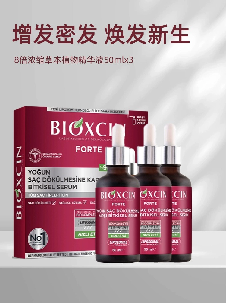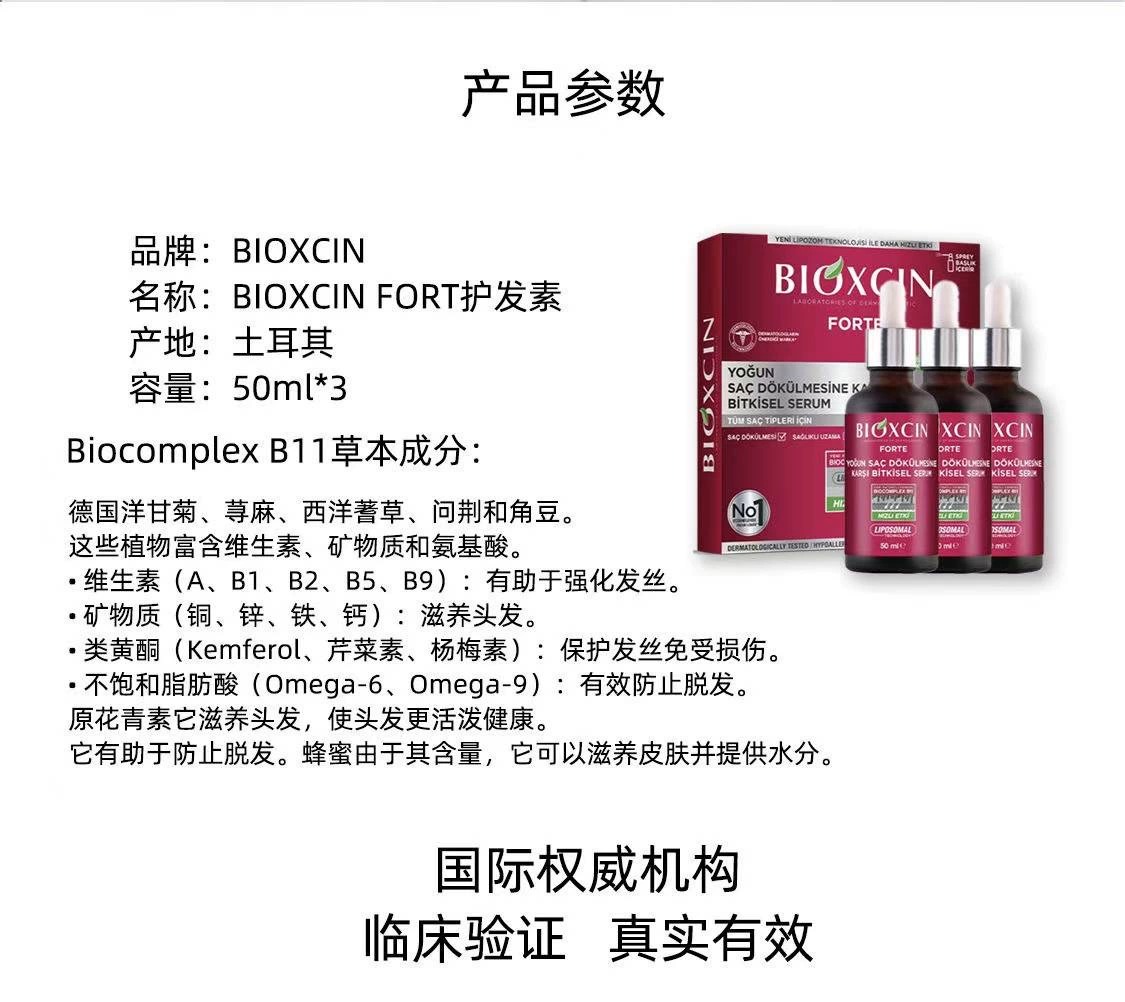 【中欧班列精选3瓶】土耳其进口BIOXCIN 柏科生防脱增发头皮养护强韧发根精华素50ml*3瓶/洗发水300ml*3瓶