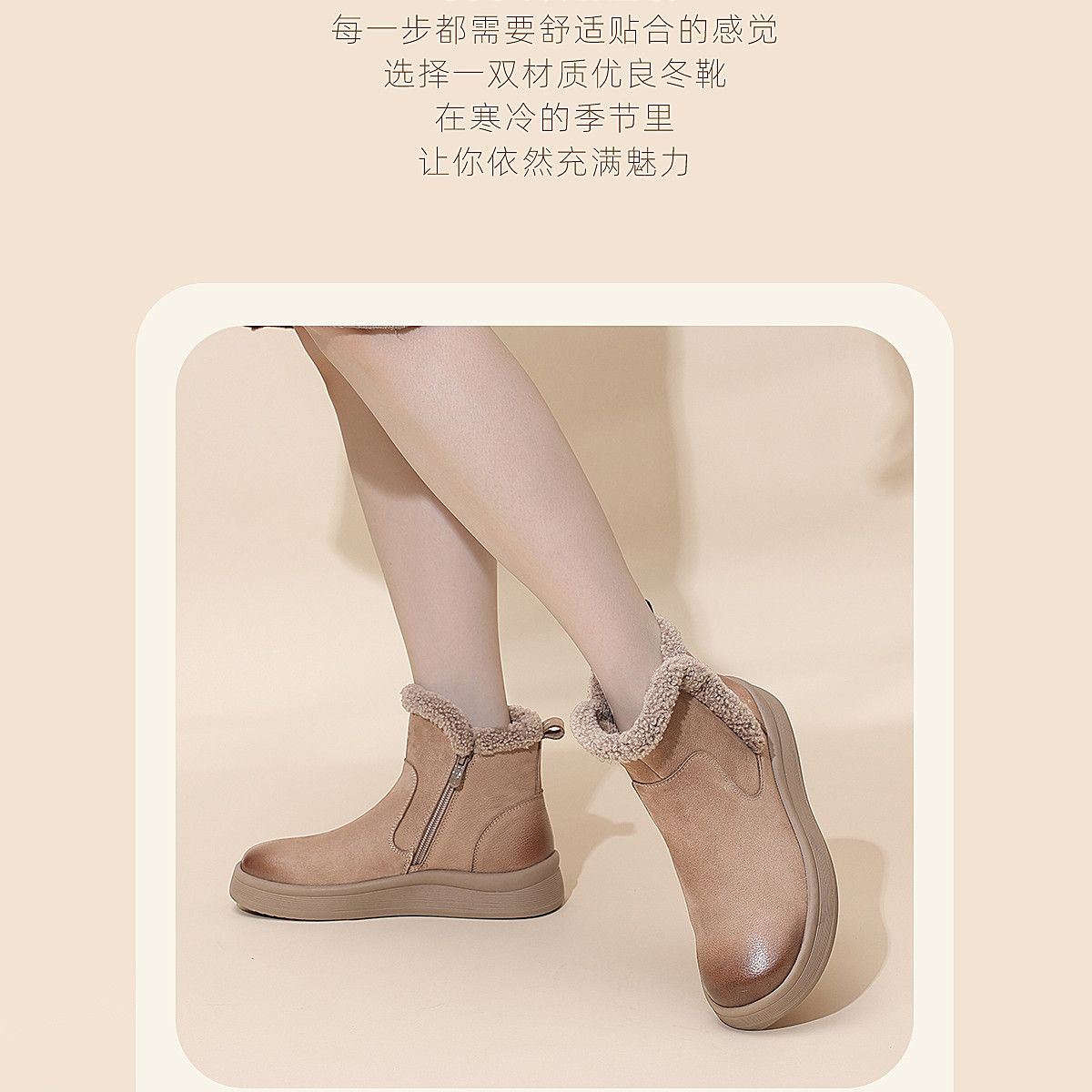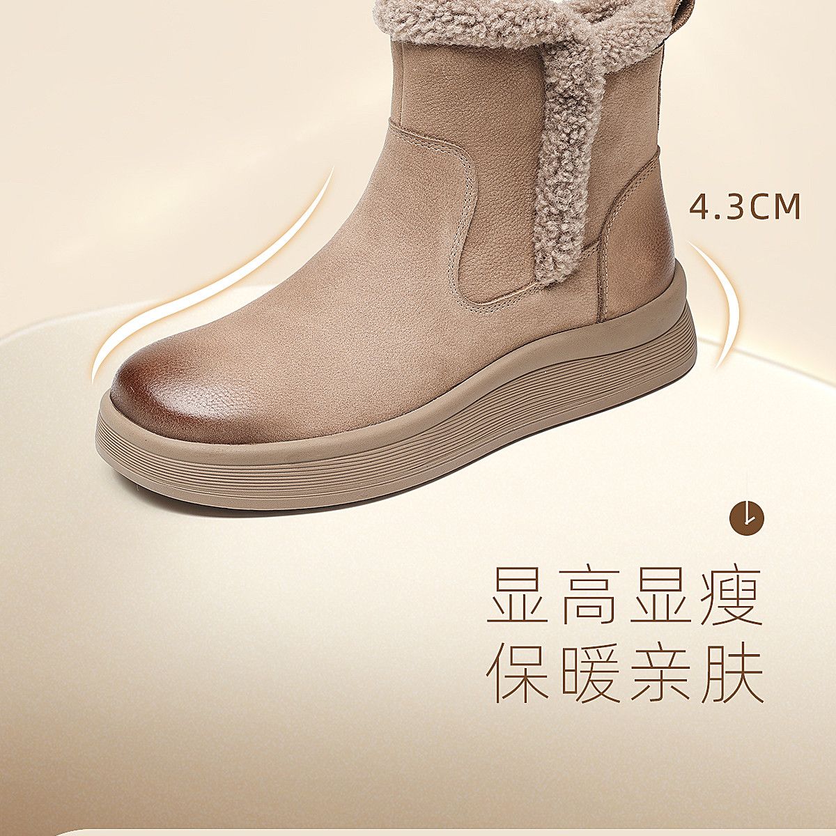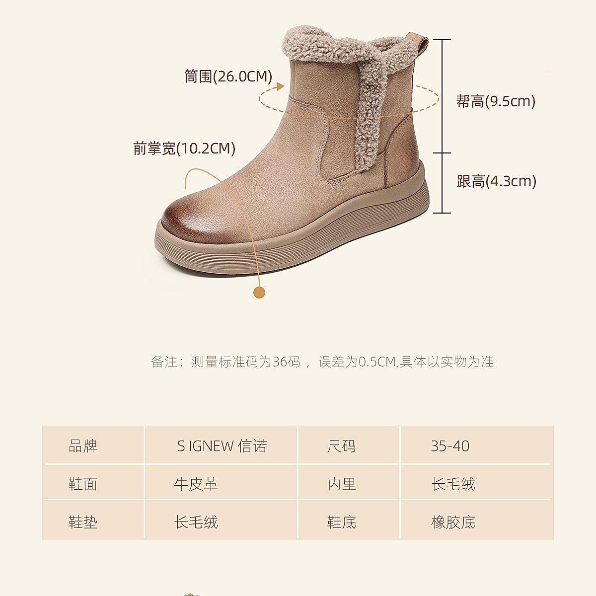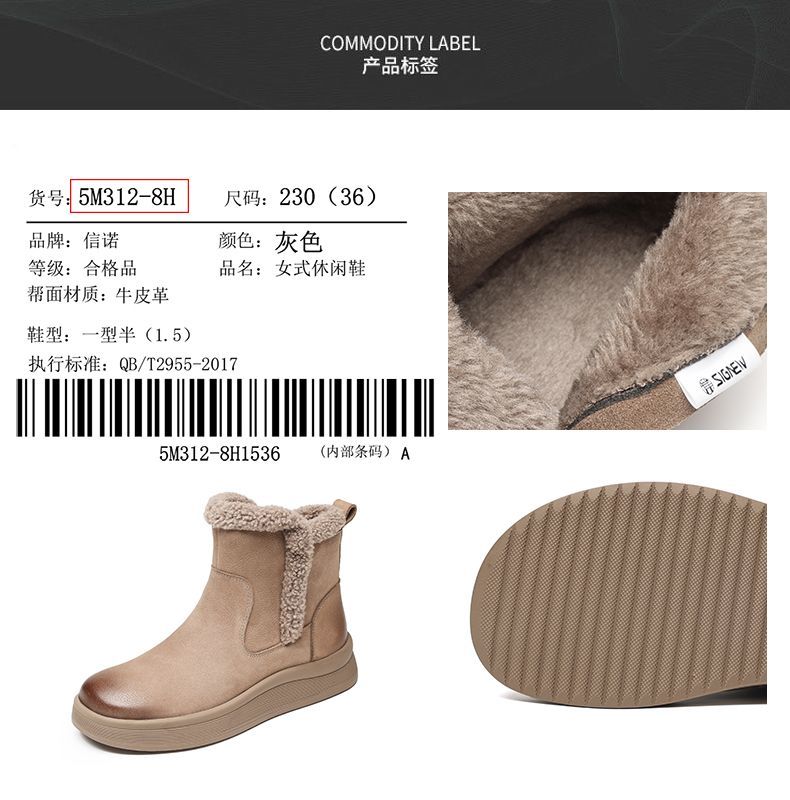 信诺真皮妈妈鞋女厚底百搭雪地靴2025冬季新款加绒保暖棉鞋短靴子5M312-8H