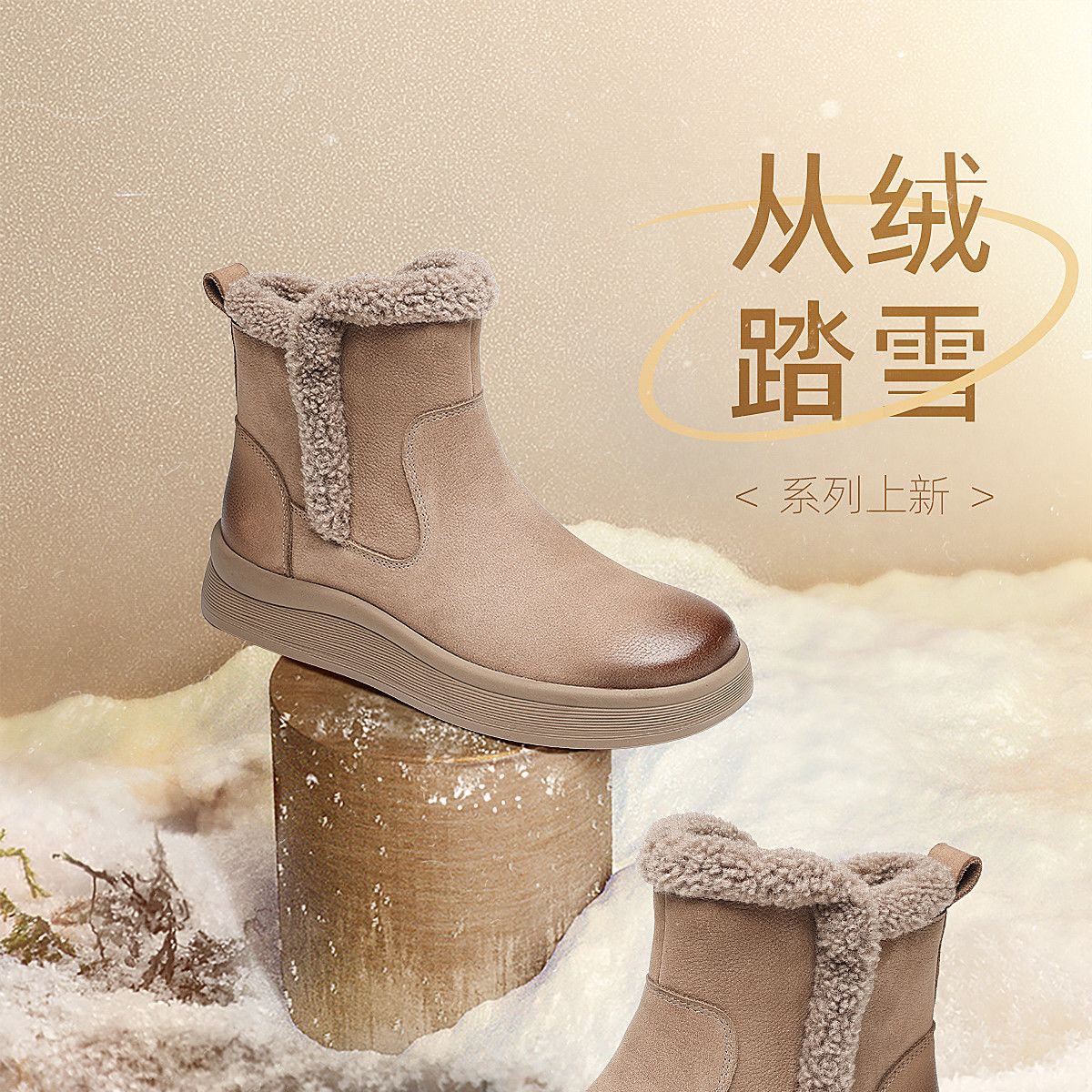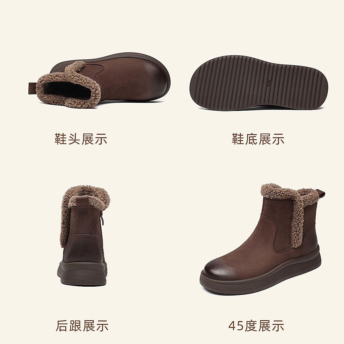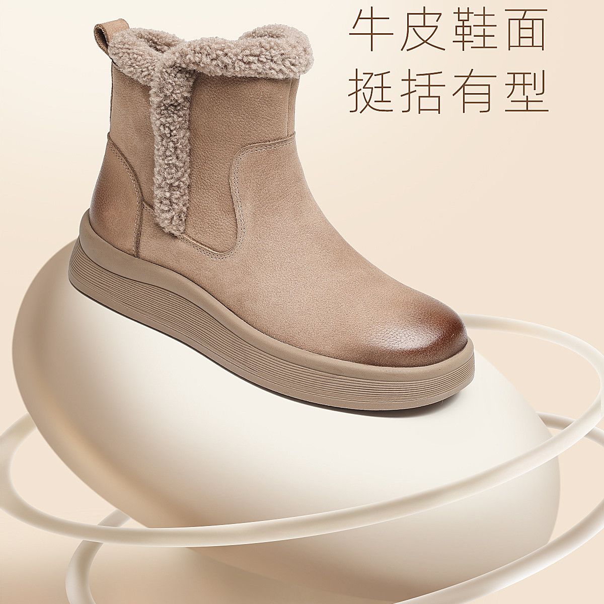 信诺真皮妈妈鞋女厚底百搭雪地靴2025冬季新款加绒保暖棉鞋短靴子5M312-8H