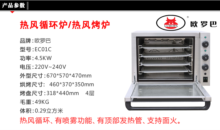 EC01C商用 热风循环 电烤炉 面包 烘焙 曲奇 蛋挞 马卡龙 泡芙烤箱EC01C