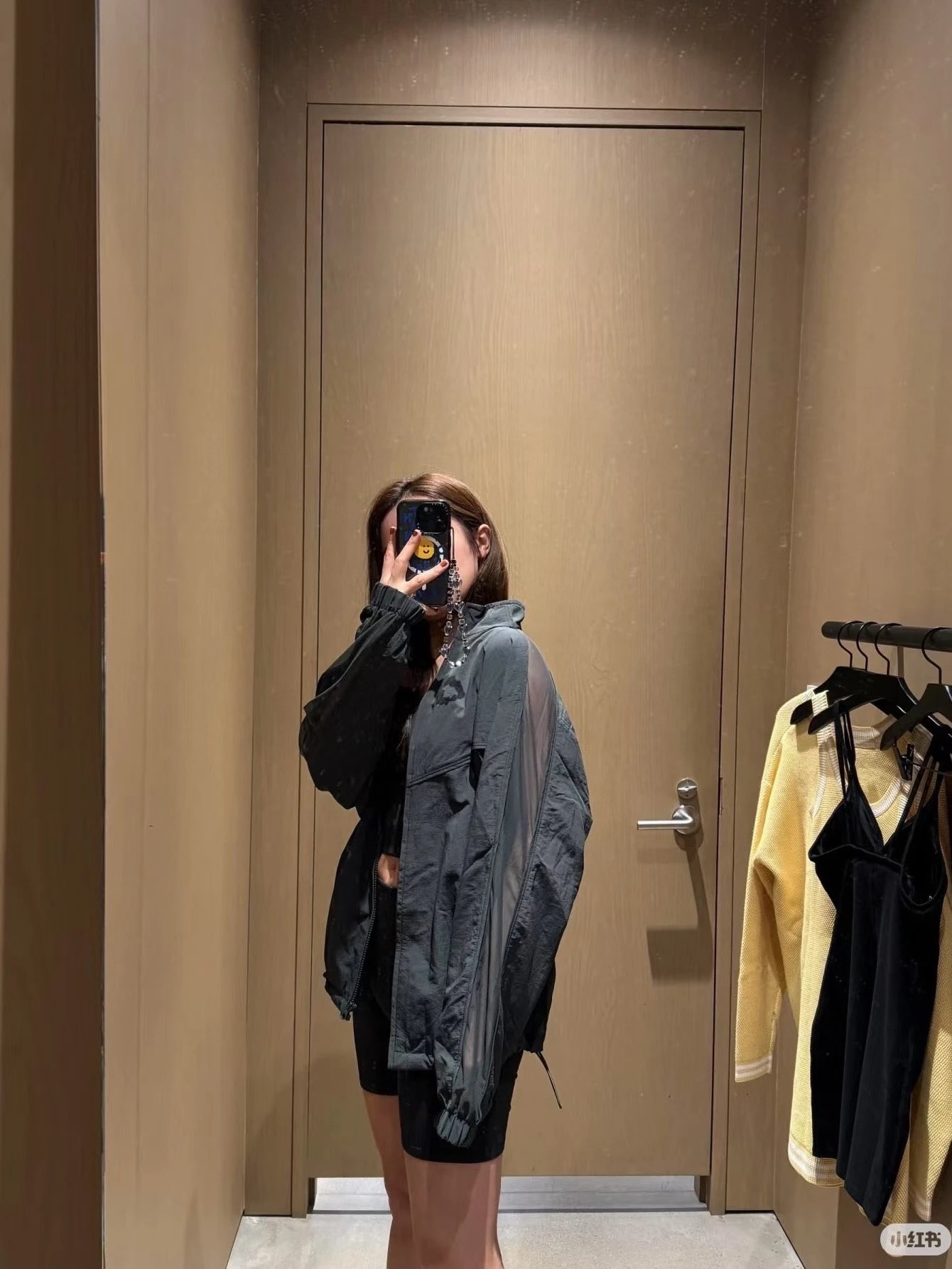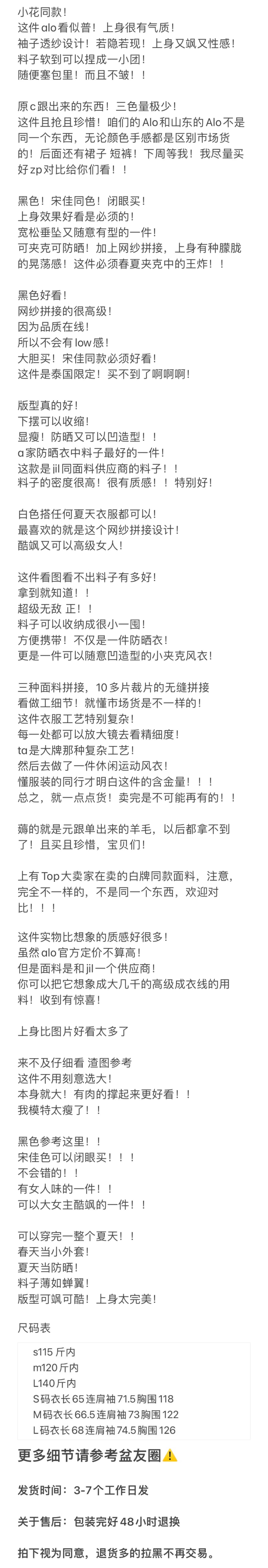 重磅渠道 A家宋佳同款 AL0泰国限定 网纱拼接皮肤风衣夹克外套 下摆可抽缩