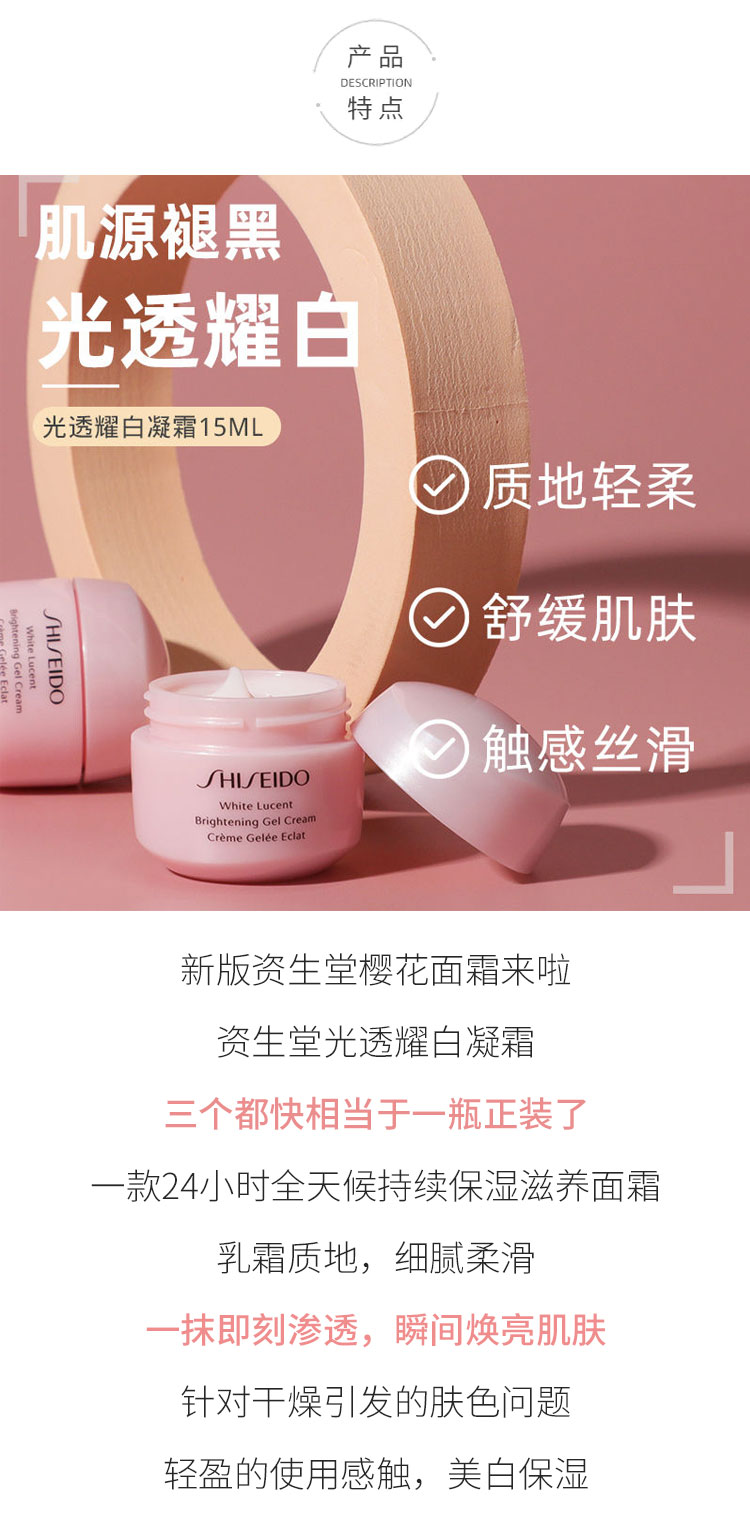 资生堂 光透耀白凝霜15ml新透白面霜 保湿提亮美白淡斑