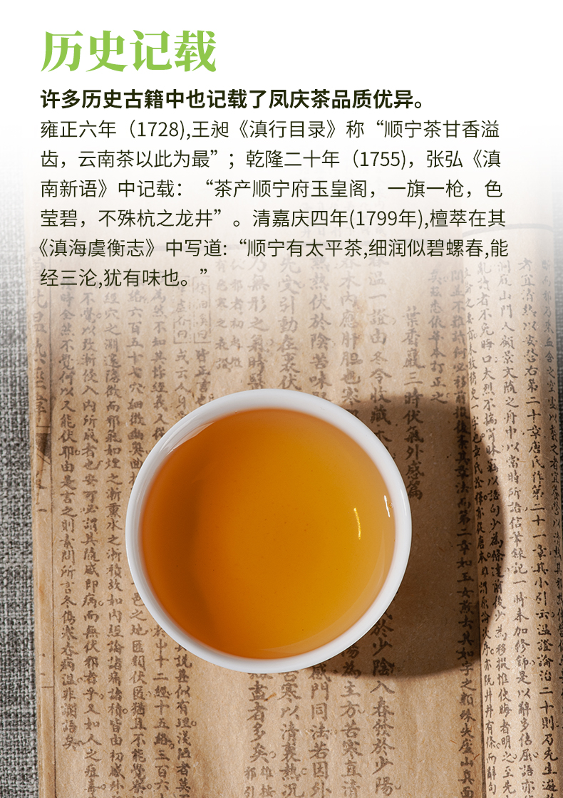 - 滇红世家,一味相承。凤宁号于1959年由第一代滇红制茶人黄开厚在凤庆创立,沿袭三代至今,已成为滇红茶代表品牌之一。