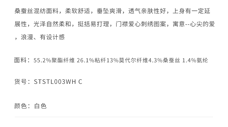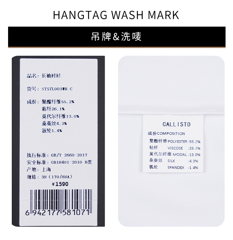 callisto白色桑蚕丝混纺长袖衬衫 STSTL003C