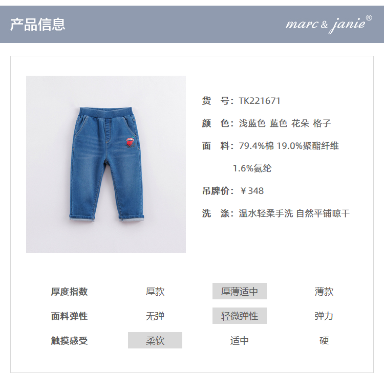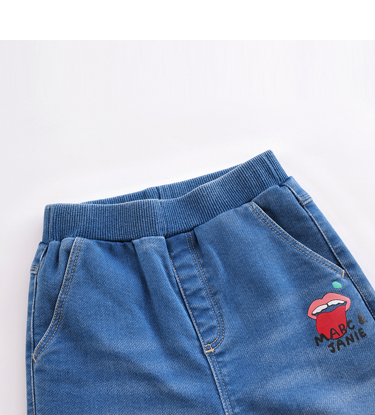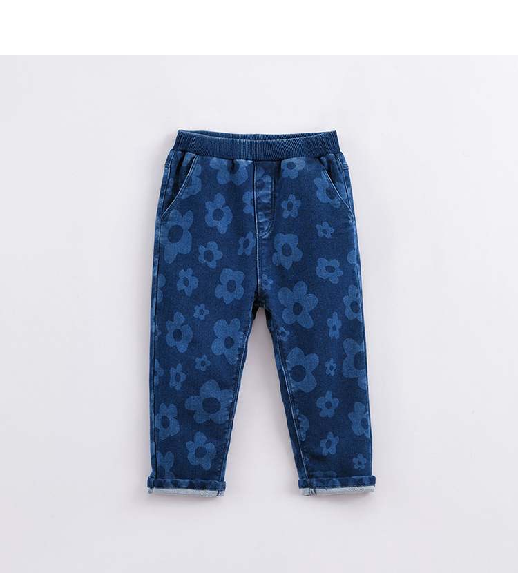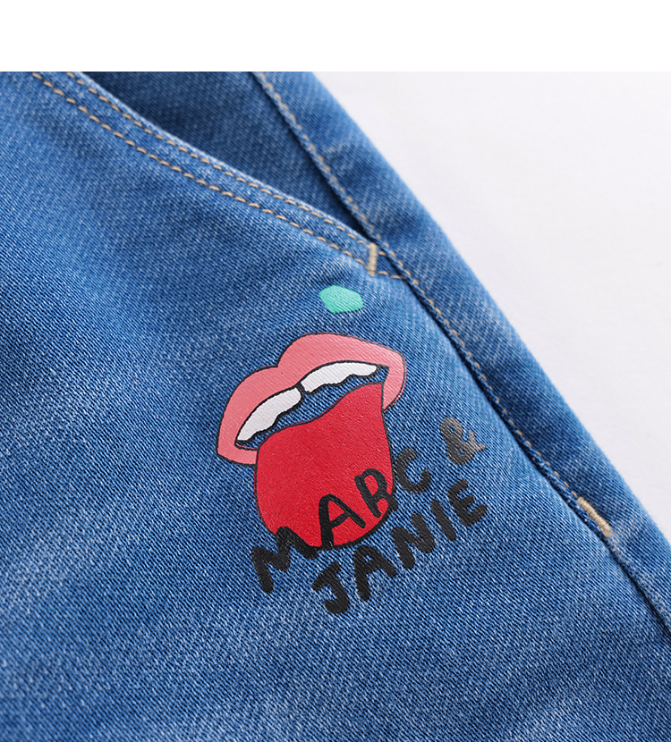 【打折】马克珍妮秋装 女童印花仿针织牛仔裤 儿童裤子221671