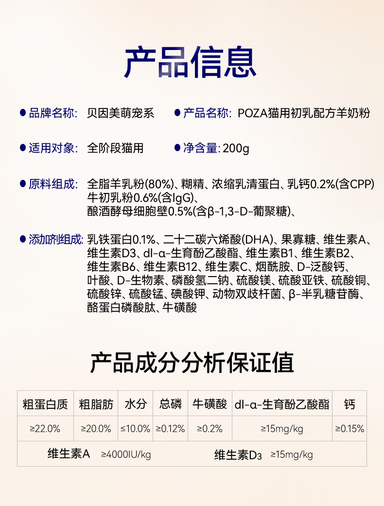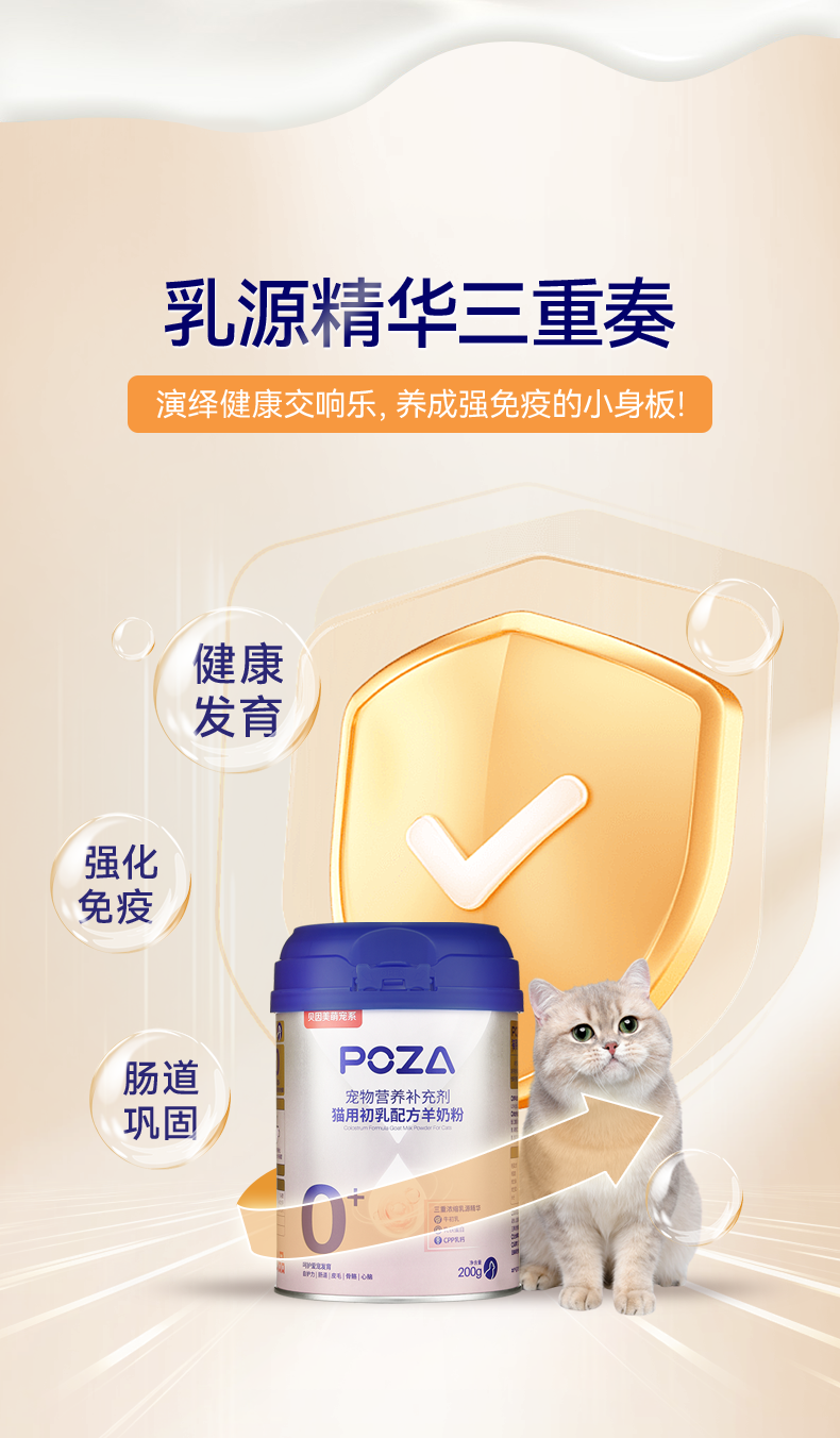 POZA贝因美萌宠系猫用初乳配方羊奶粉小猫咪幼猫专用乳铁蛋白正品(猫用初乳配方羊奶粉*1罐200g)
