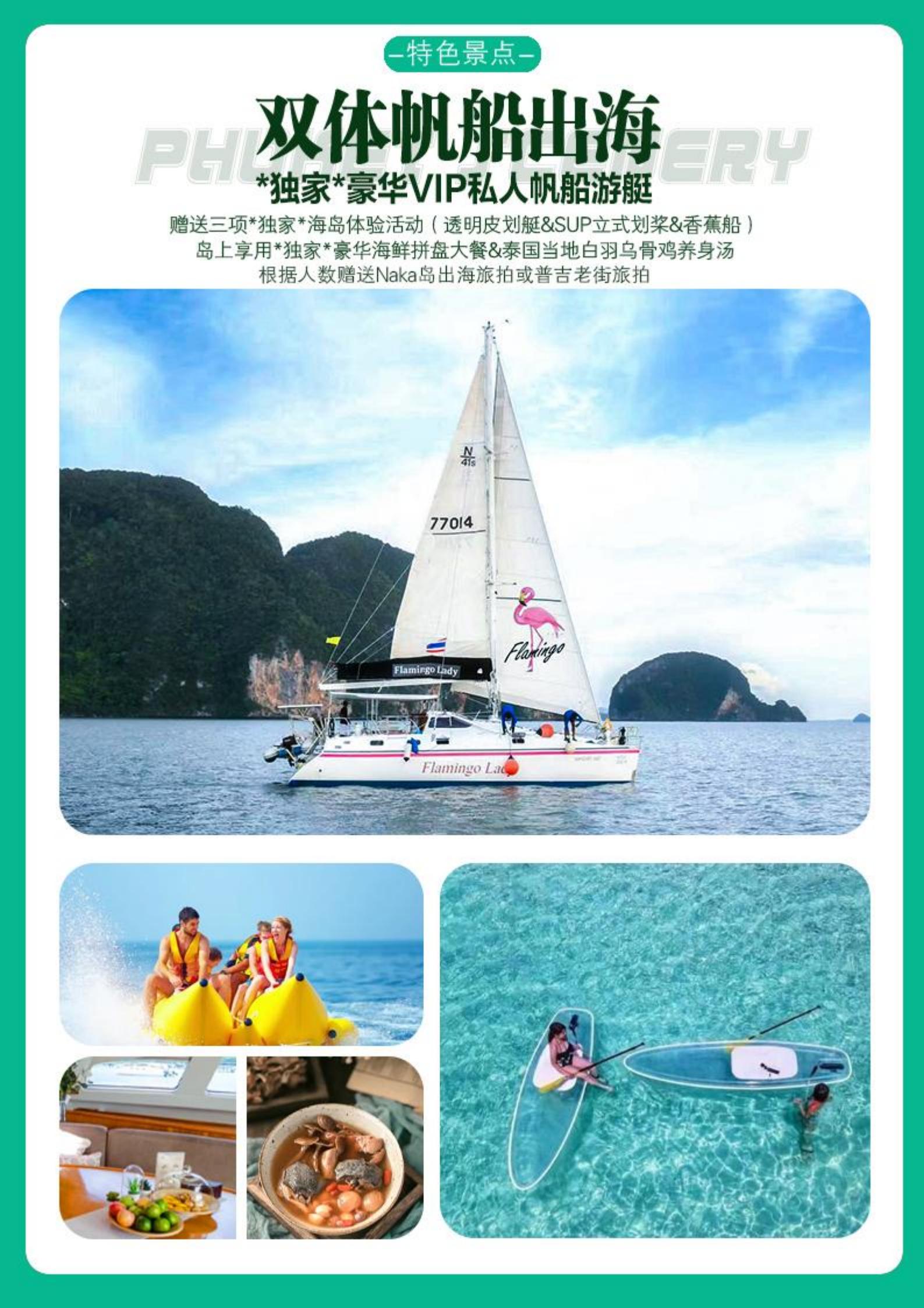 【五一】<泰国普吉岛5天>双体帆船火烈鸟号出海纳卡攀雅岛(透明皮划艇+立式划桨+香蕉船)、快艇出海大小PP岛环游+帝王岛浮潜、网红青蛙夜市、拉威海鲜市场、唐人街、骑大象、人妖秀、赠送泰式按摩