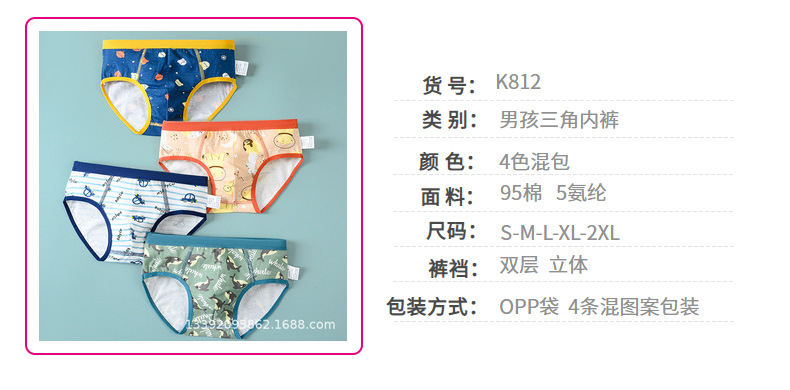 【49元4条装】三角男孩内裤纯棉男童卡通男生儿童内裤纯棉a类男童-K800、K811、K812