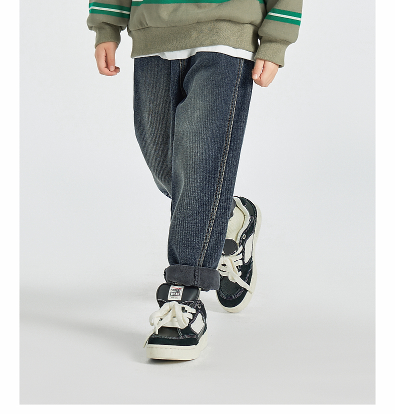 【团购价69.9】多多家男童加绒牛仔裤儿童裤子2024新款秋冬款中大童洋气长裤冬装10046