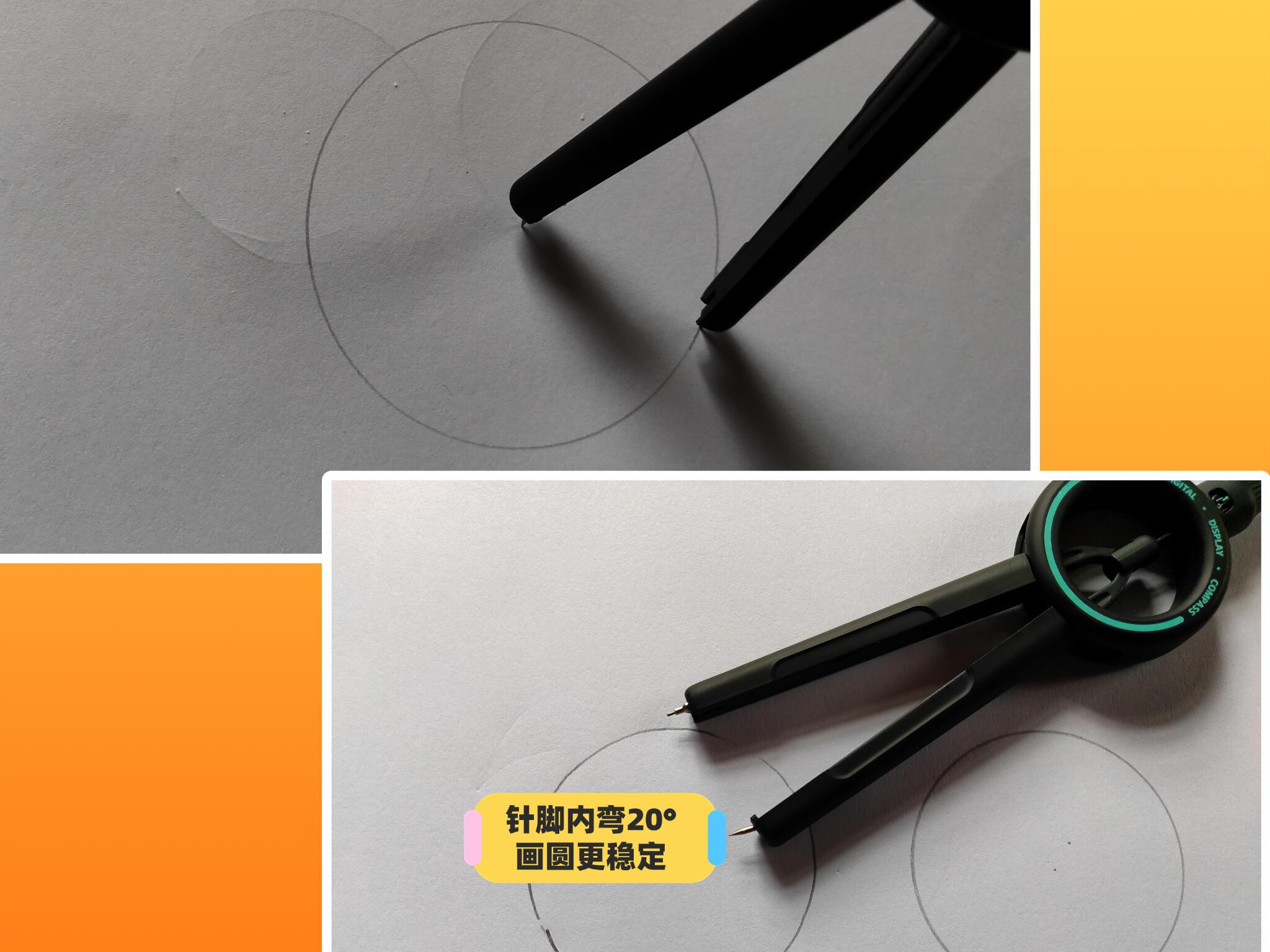 提升孩子学习效率的黑科技! 拉开圆规,半径一目了然且精准! 调整规脚间距 数显盘即显示半径数据 别的同学还在用尺子量距离,咱孩子已经画好图开始计算了! 无尺画圆就是这么效率!