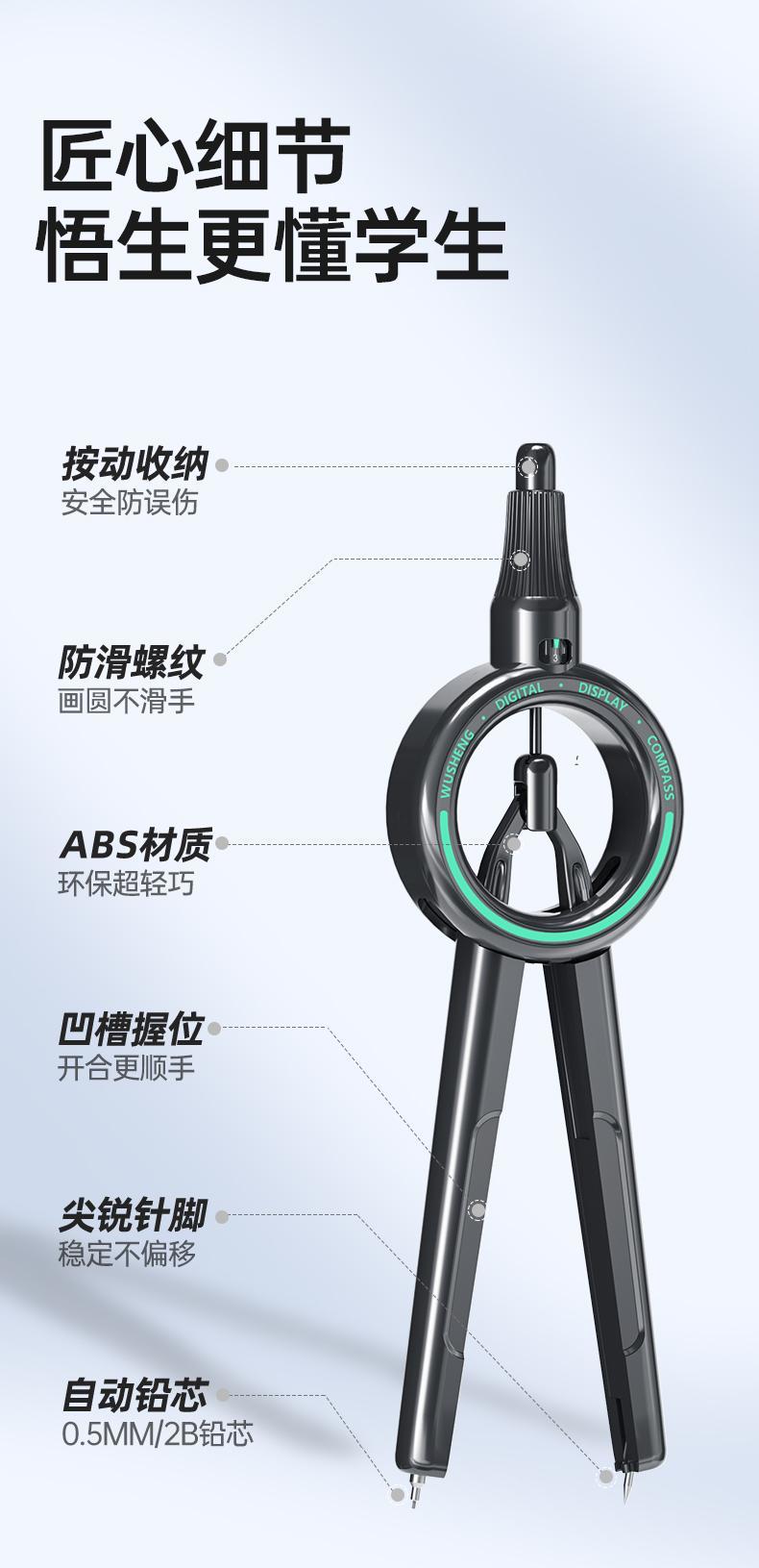 悟生全面升级分新一代圆规,来了! 画圆使用感3倍提升upupup 握感更轻+9999 画圆更稳+9999 数显更准+9999 铅芯通用+9999 安全性能+9999 。。。