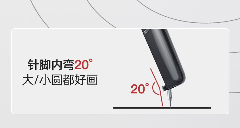 而且针脚不是直针脚,内弯20°,在画圆的时候与纸面垂直!更稳定!