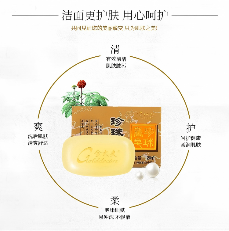 【片仔癀金大夫】珍珠香皂洗澡洗手洗脸沐浴皂肥皂清爽控油家用三块装120g*3