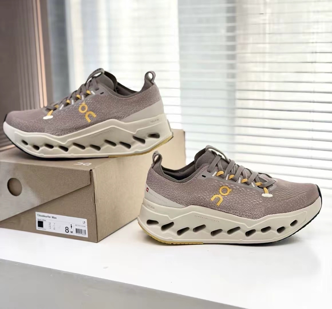 ☁️On Cloudsurfer Max灰米男跑鞋,潮酷配色适配日常 🏃♂️软弹中底加持,跑跳都能踩出云朵感,舒适不设限~