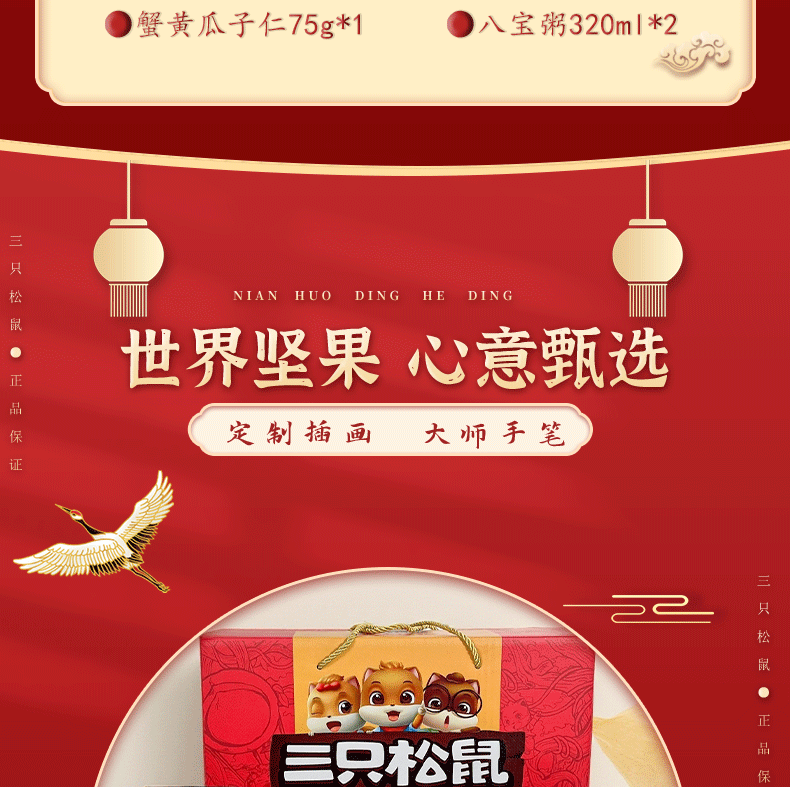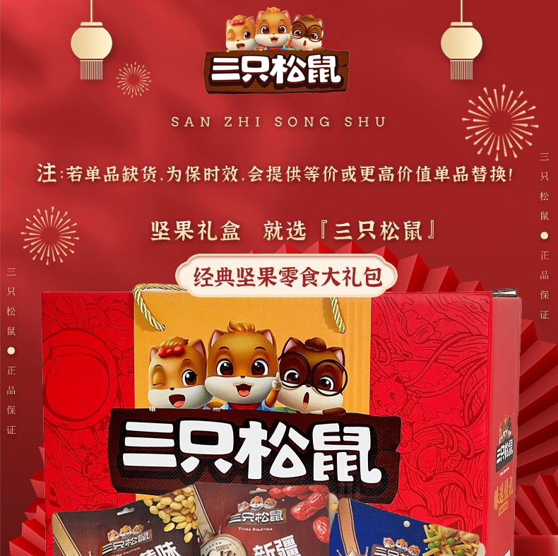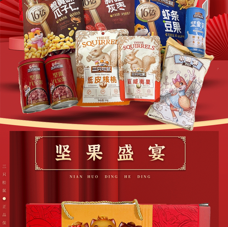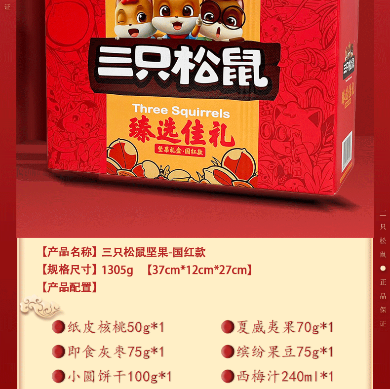 (1.20直播)三只松鼠年货礼盒-龙凤系列爆款--国红款1305g【臻礼贺岁】