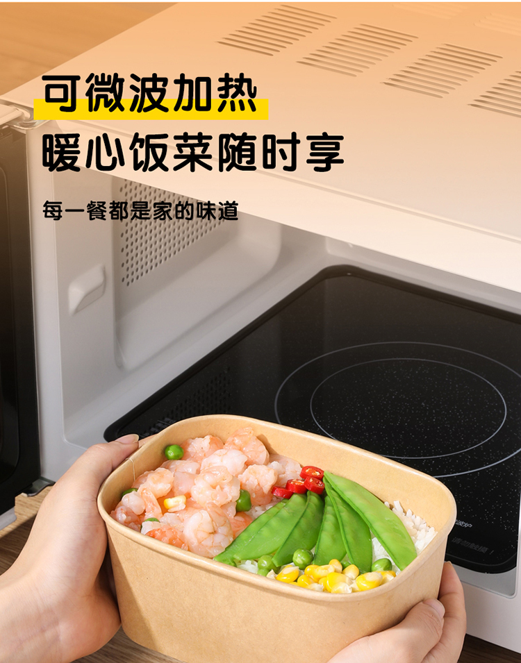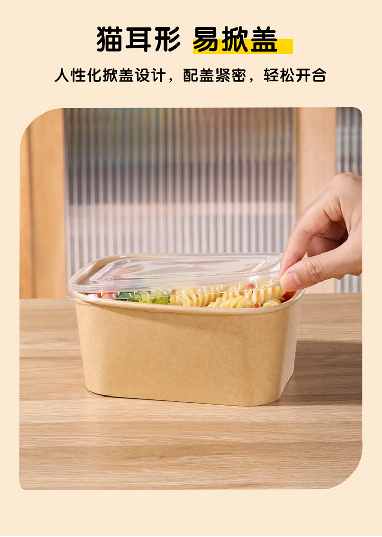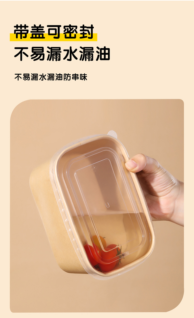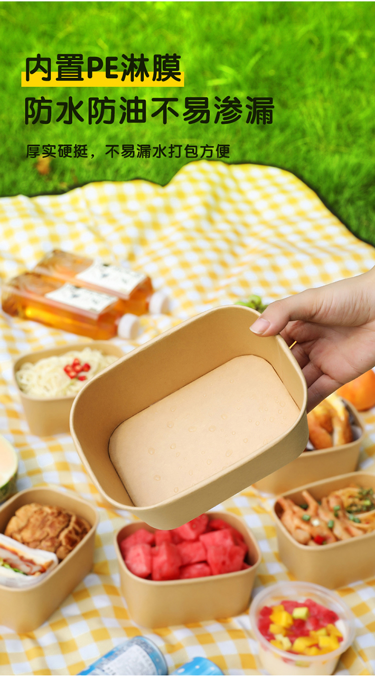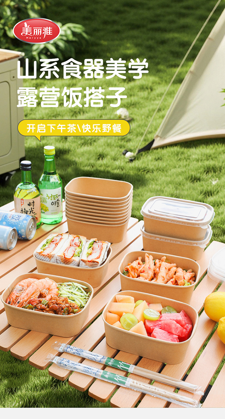 美丽雅餐盒 一次性方形牛皮纸打包盒食品级快餐外卖水果打包餐盒 1000ml*8套/包