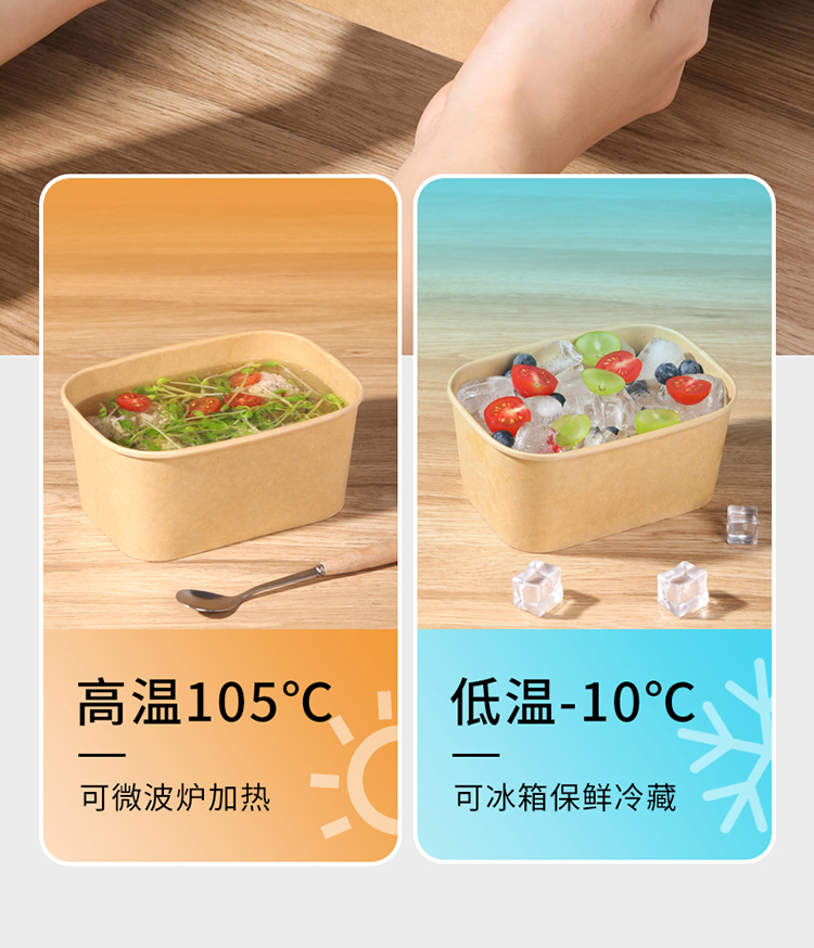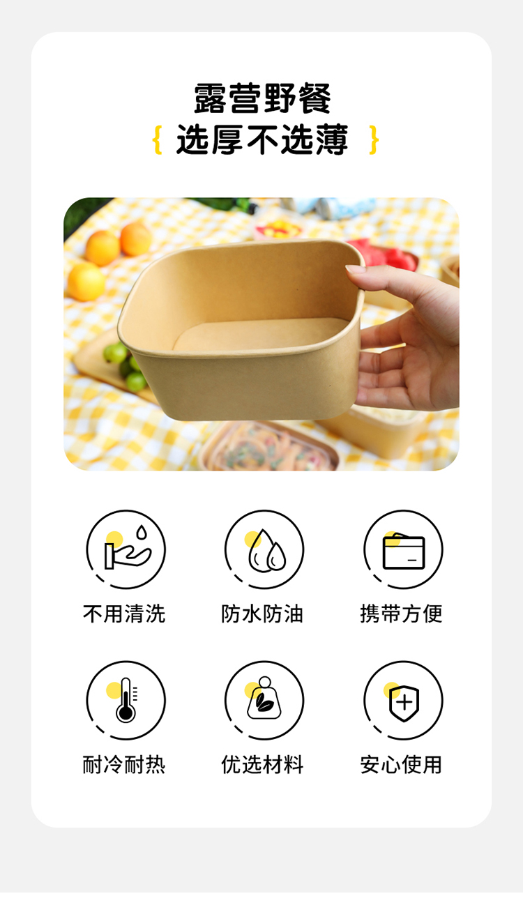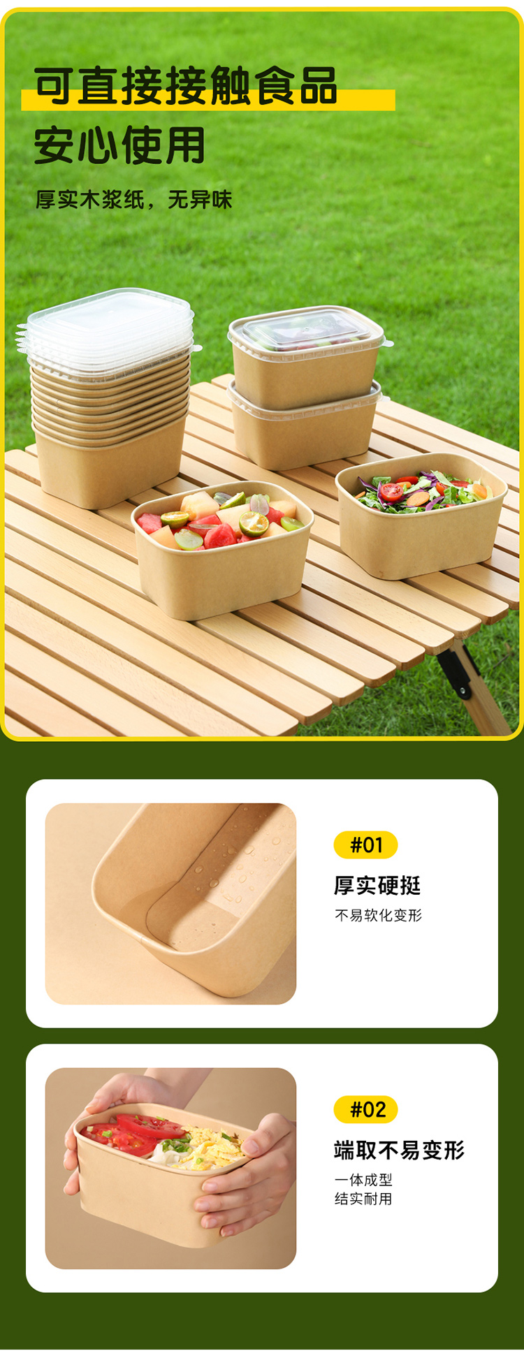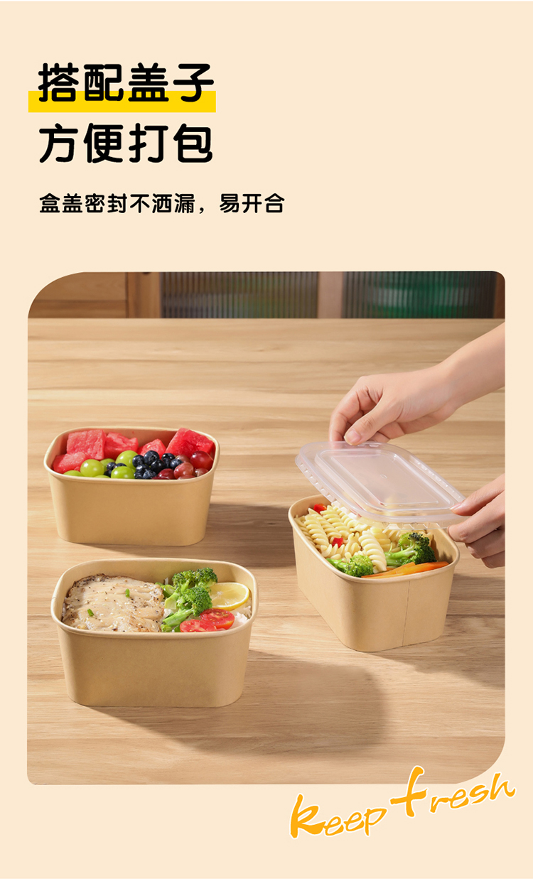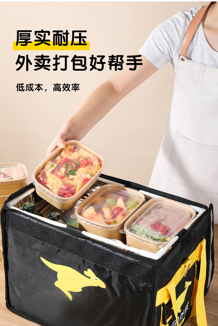 美丽雅餐盒 一次性方形牛皮纸打包盒食品级快餐外卖水果打包餐盒 1000ml*8套/包