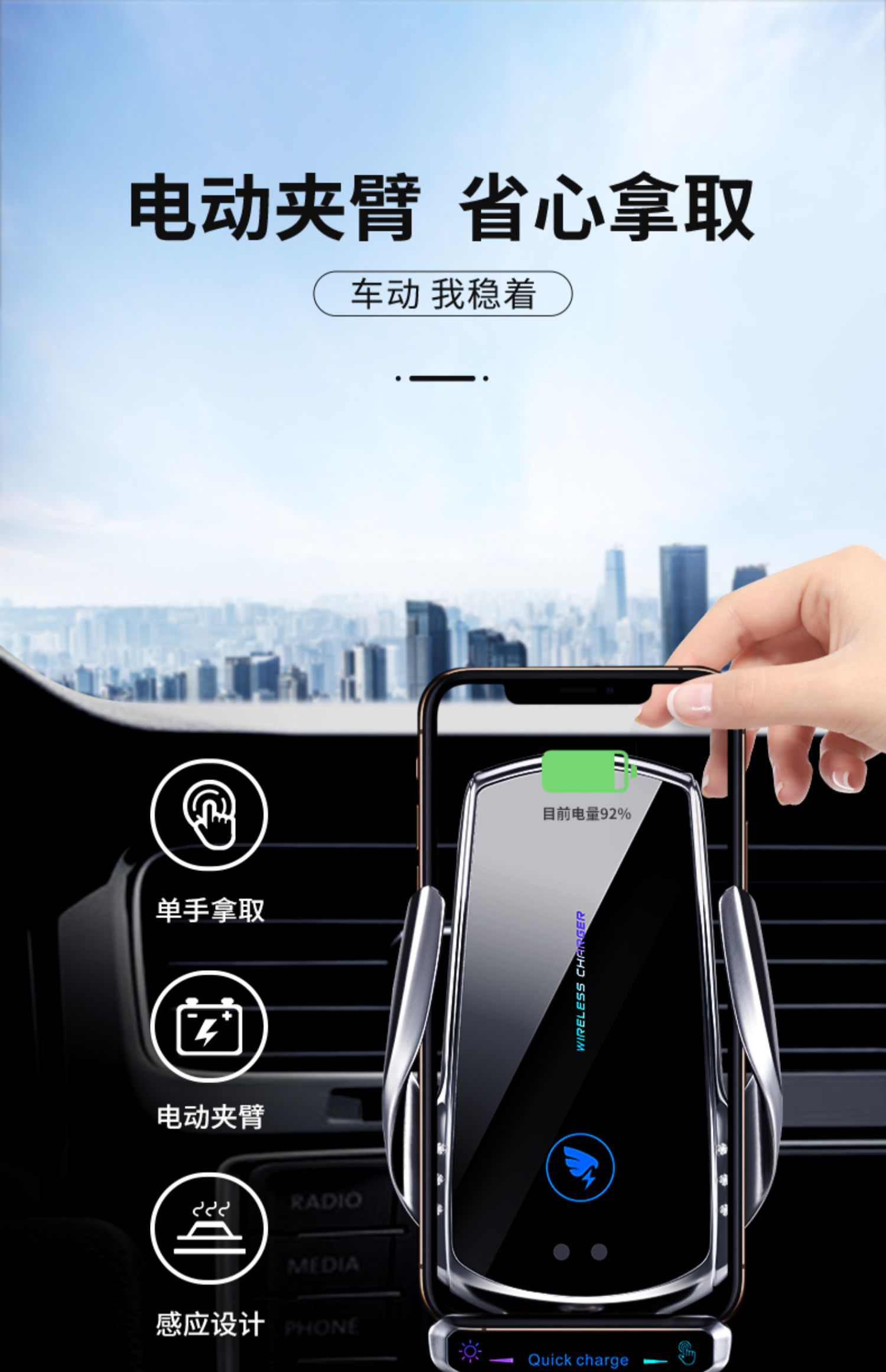 2024无线充电车载手机支架~自动感应
