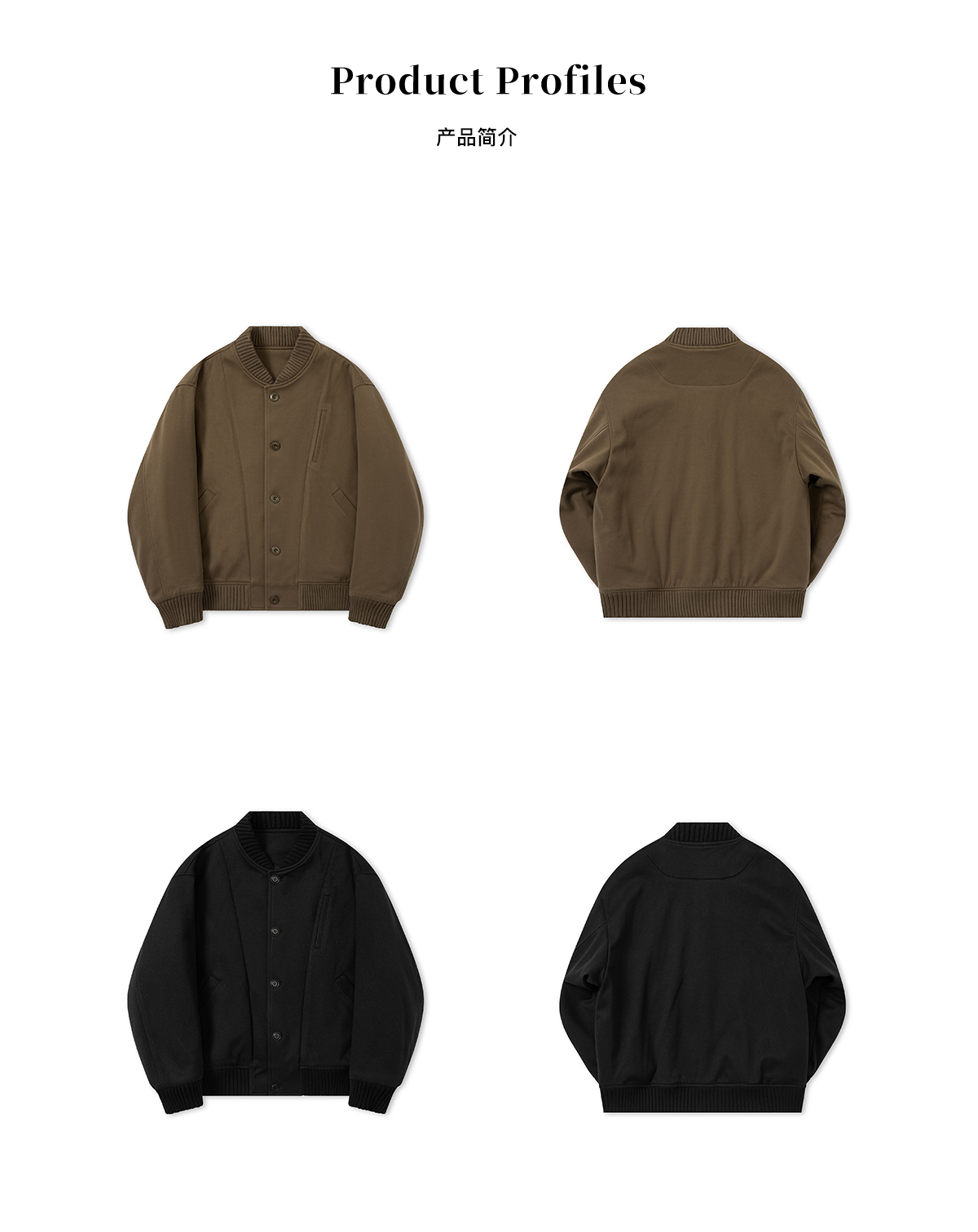 Evistub/E-4DWT836/重磅混纺毛呢内绗棉抗风保暖棒球服夹克