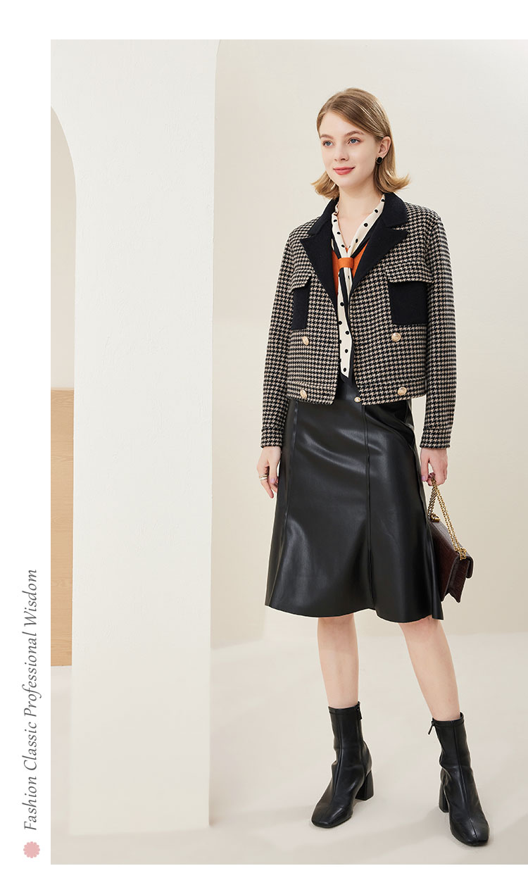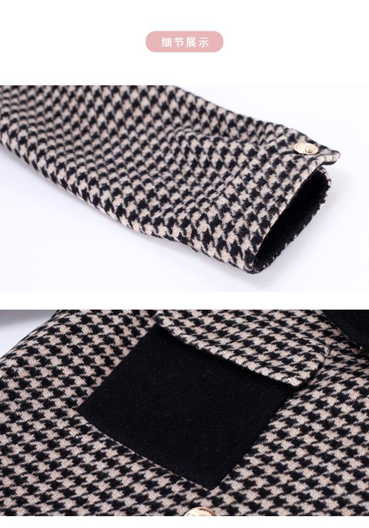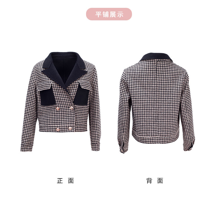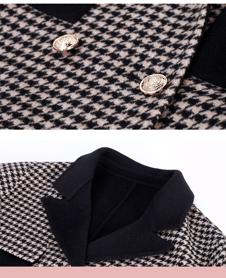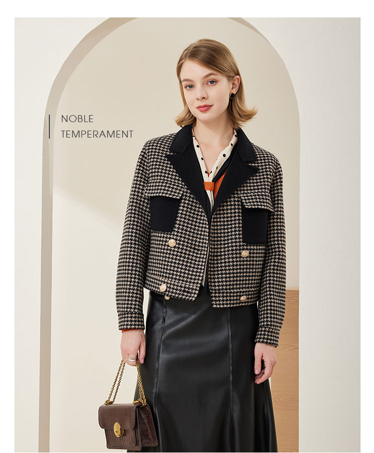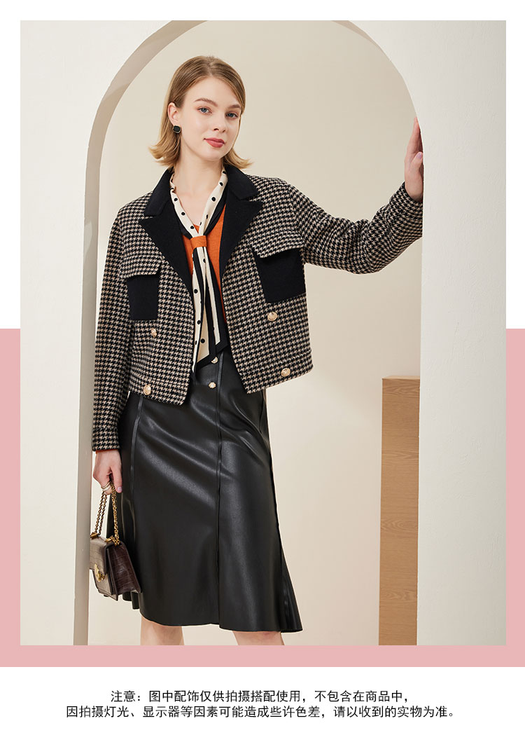 MH9F6斯尔丽瑟俪2022年冬上新商场同款拼色西装领千鸟格双面呢短款大衣