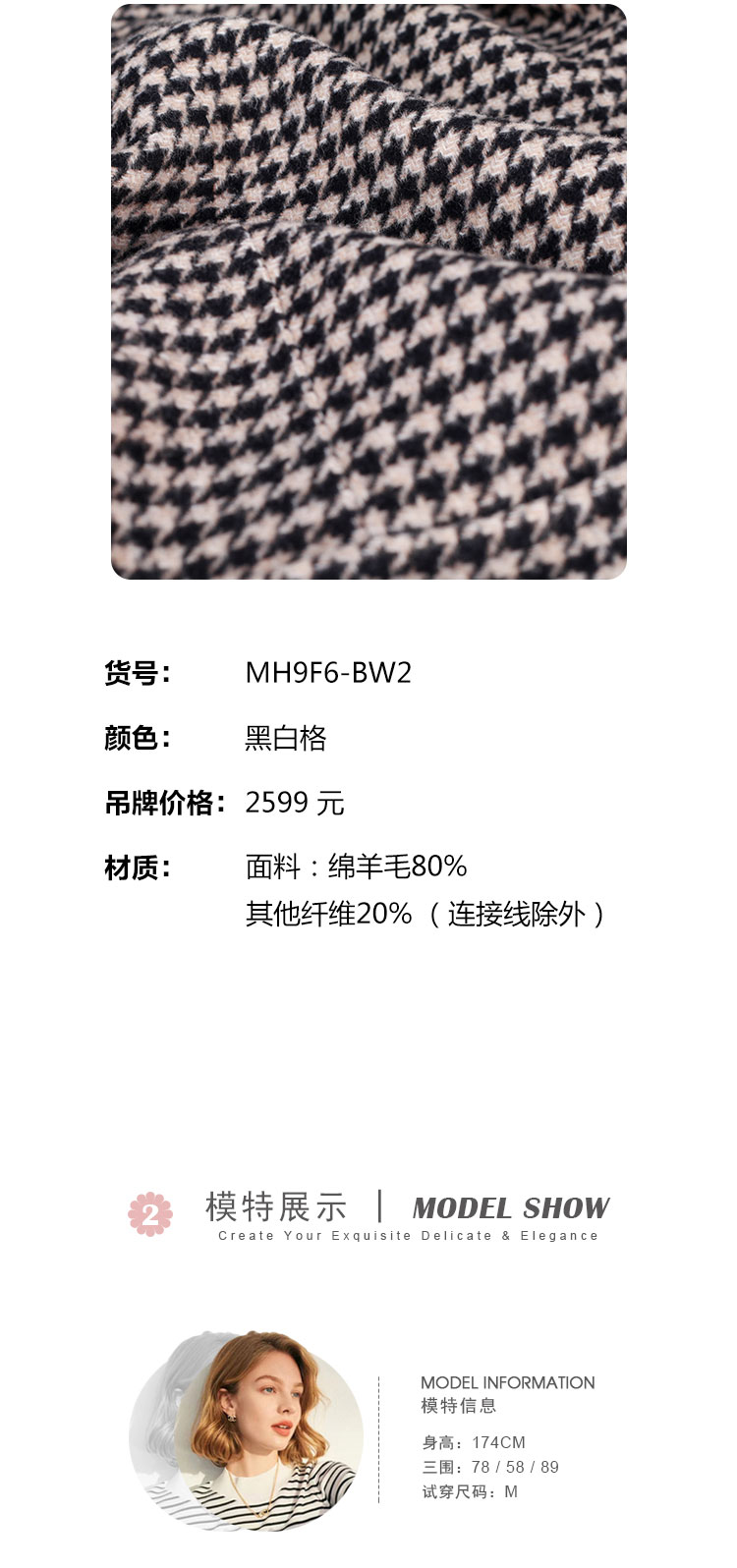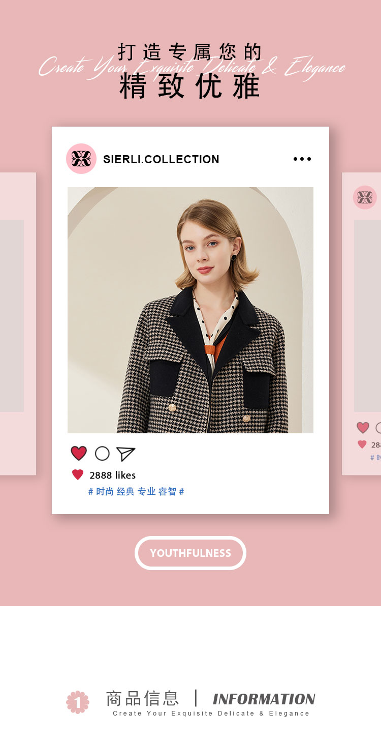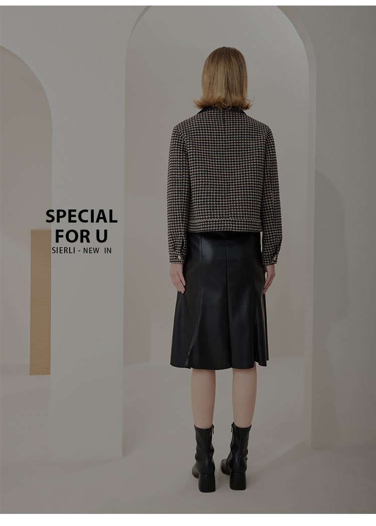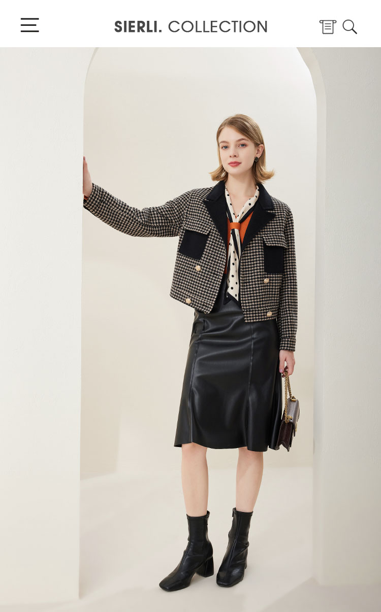 MH9F6斯尔丽瑟俪2022年冬上新商场同款拼色西装领千鸟格双面呢短款大衣