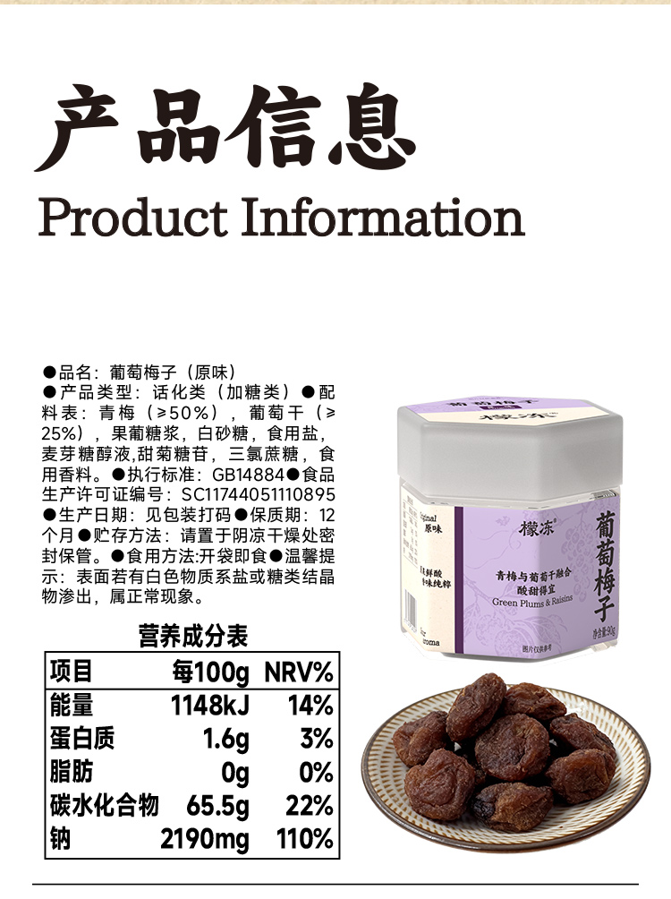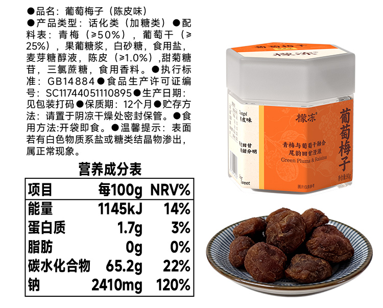 檬冻 蜜饯系列(葡萄梅子/日式梅饼/海盐老陈皮/九制老梅干)