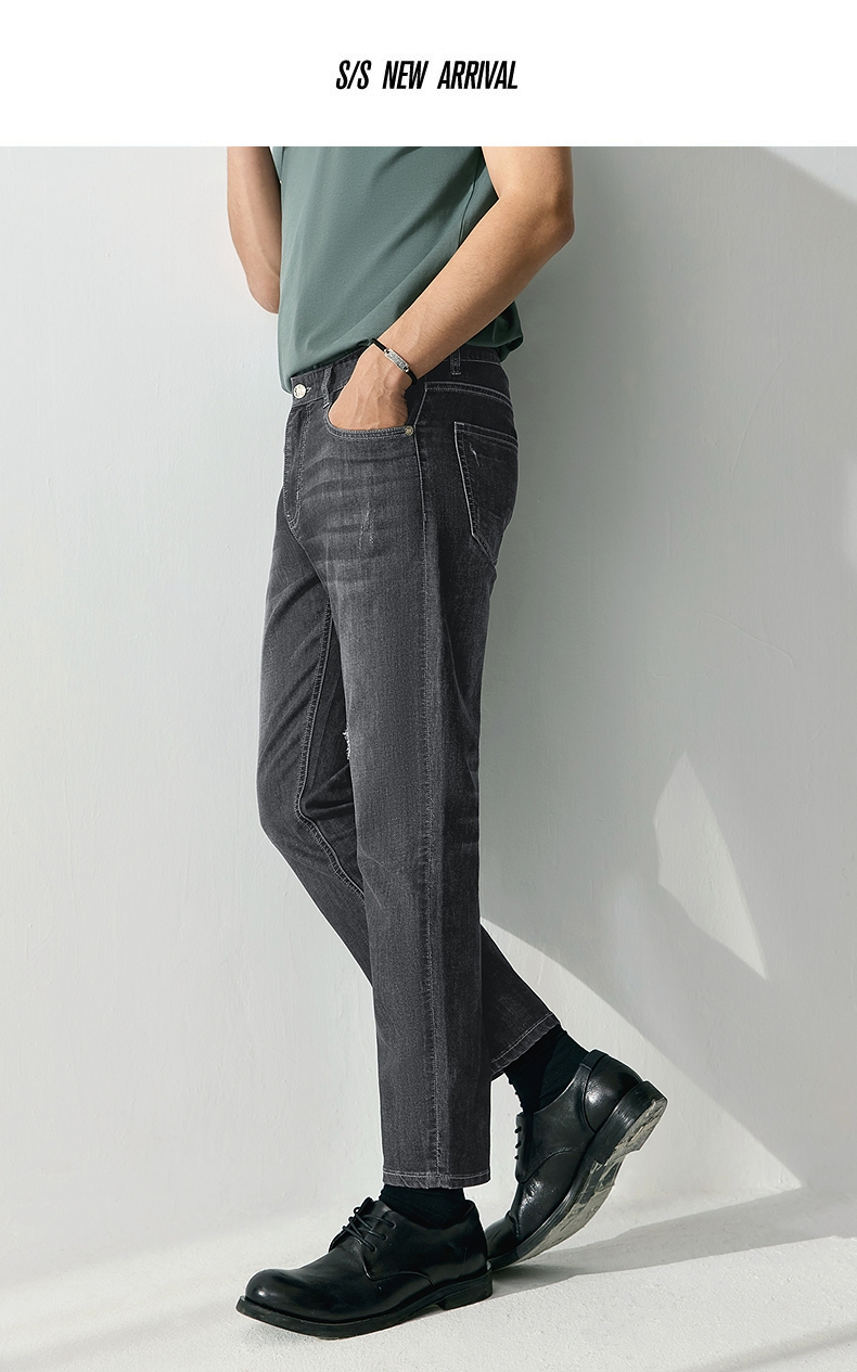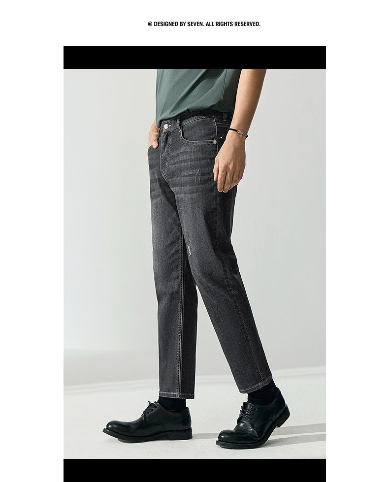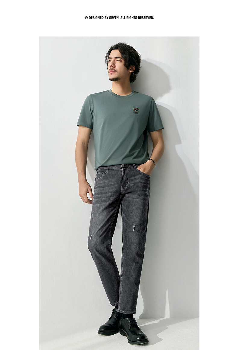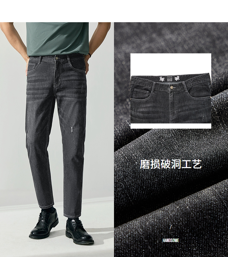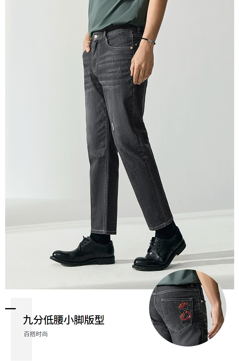 【中华立领】柒牌男士潮流牛仔裤春季2025新款时尚破洞九分小脚裤128H73790