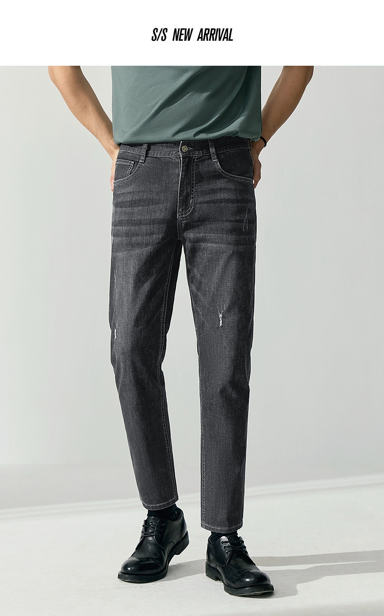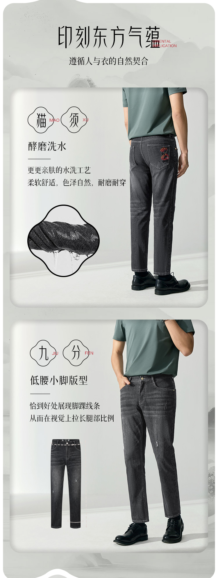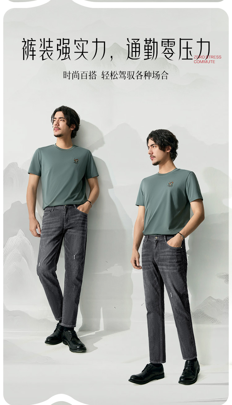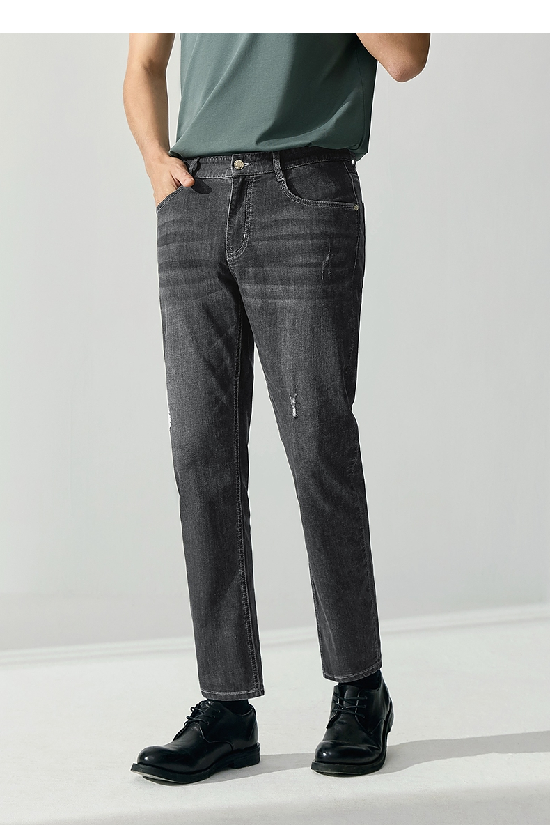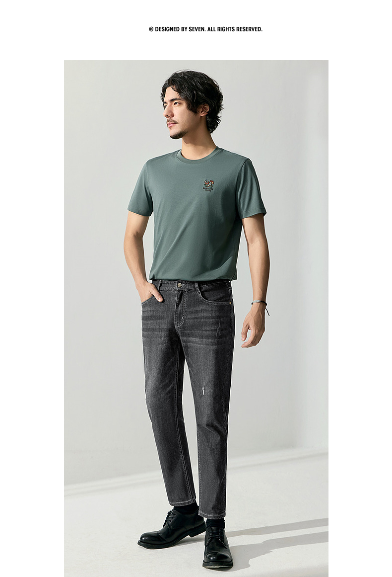 【中华立领】柒牌男士潮流牛仔裤春季2025新款时尚破洞九分小脚裤128H73790