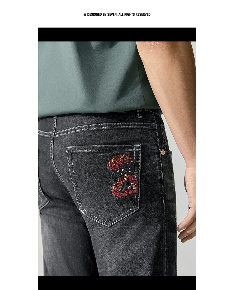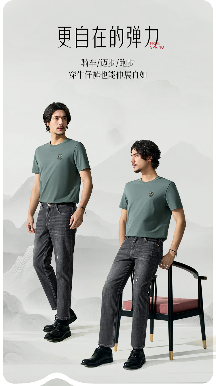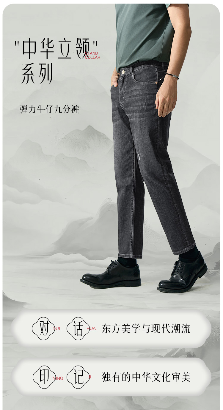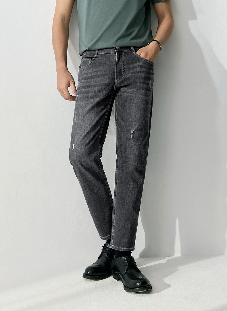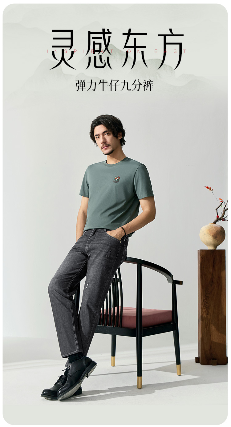 【中华立领】柒牌男士潮流牛仔裤春季2025新款时尚破洞九分小脚裤128H73790