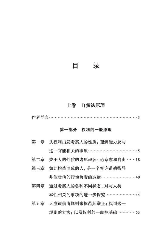 本书是18世纪瑞士日内瓦自然法理论家让-雅克•布拉马克的代表作。在本书中,布拉马克对此前的自然法理论家,特别是格劳秀斯、普芬道夫和巴贝拉克的观点,既有继承,也有挑战和批评,同时在自然法体系中引入了诸如“人的目的是追求幸福”等一些新的要素。本书在18、19世纪被广泛阅读和征引。