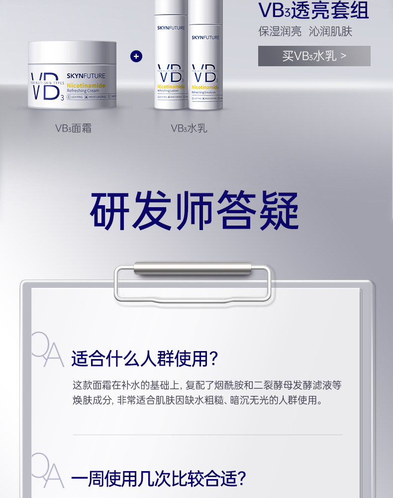 肌肤未来VB烟酰胺面霜50g 补水保湿舒缓润亮改善暗沉滋润女护肤品正品