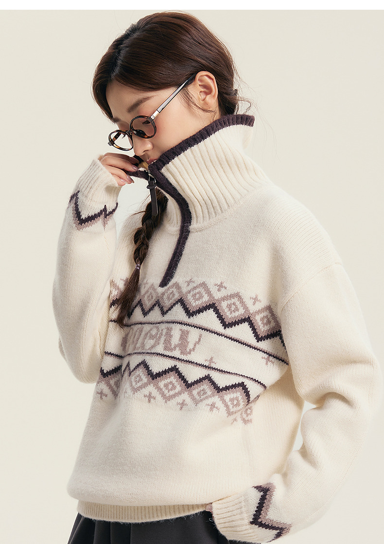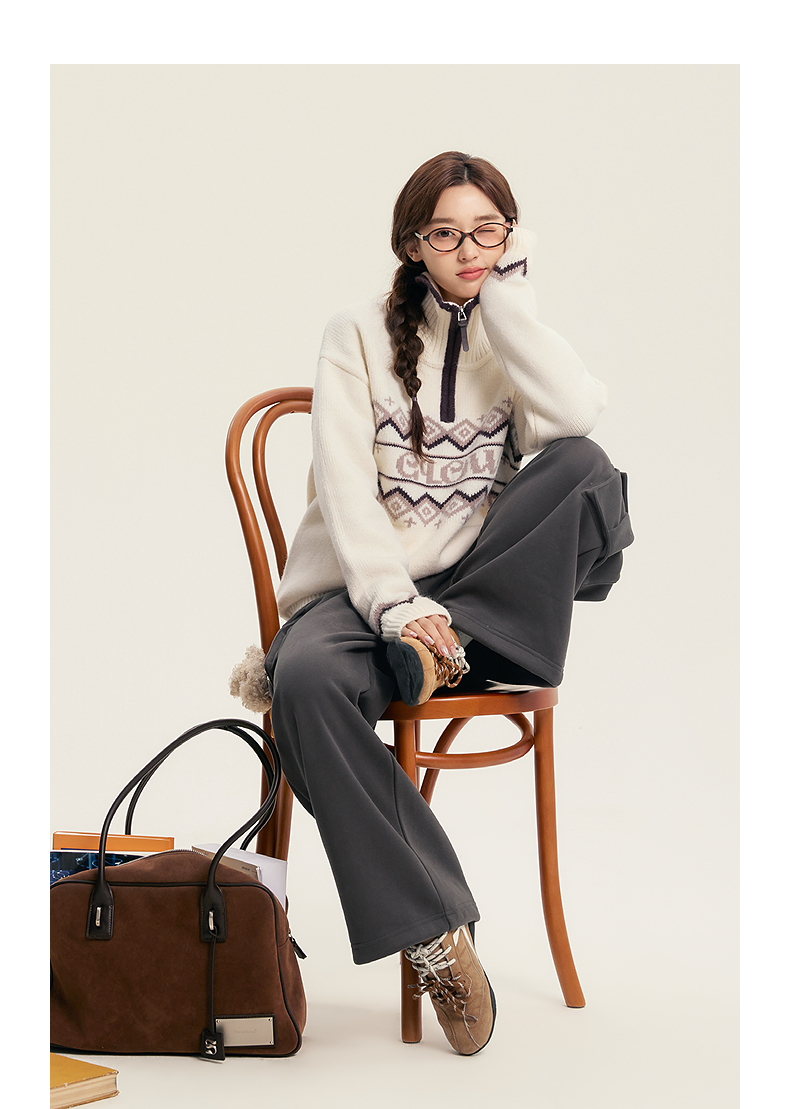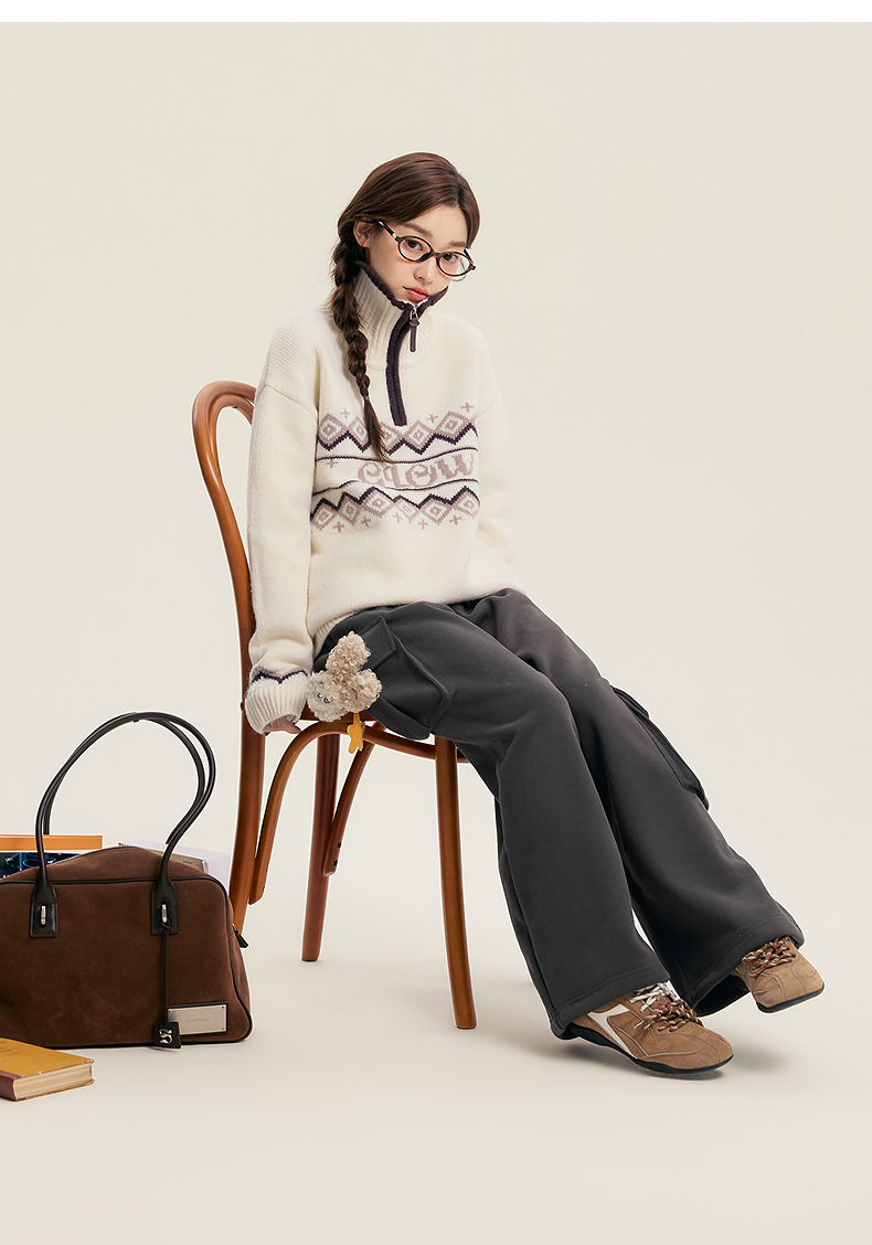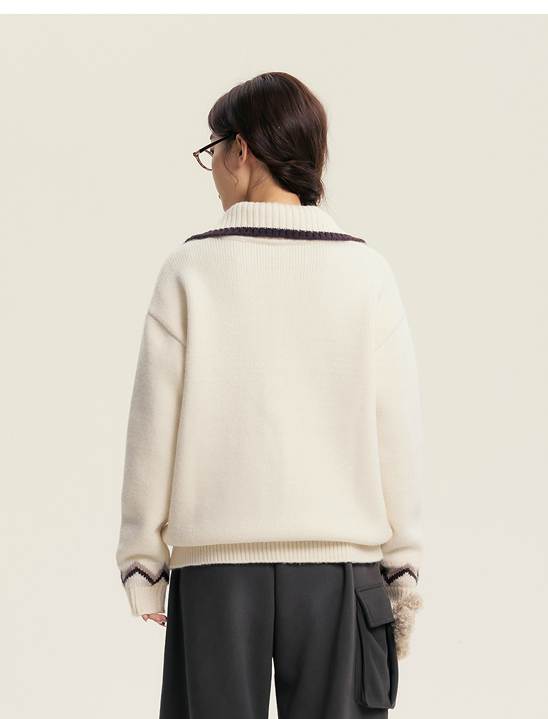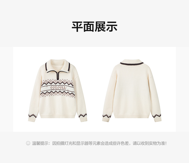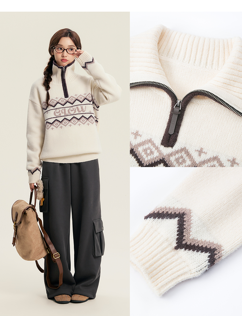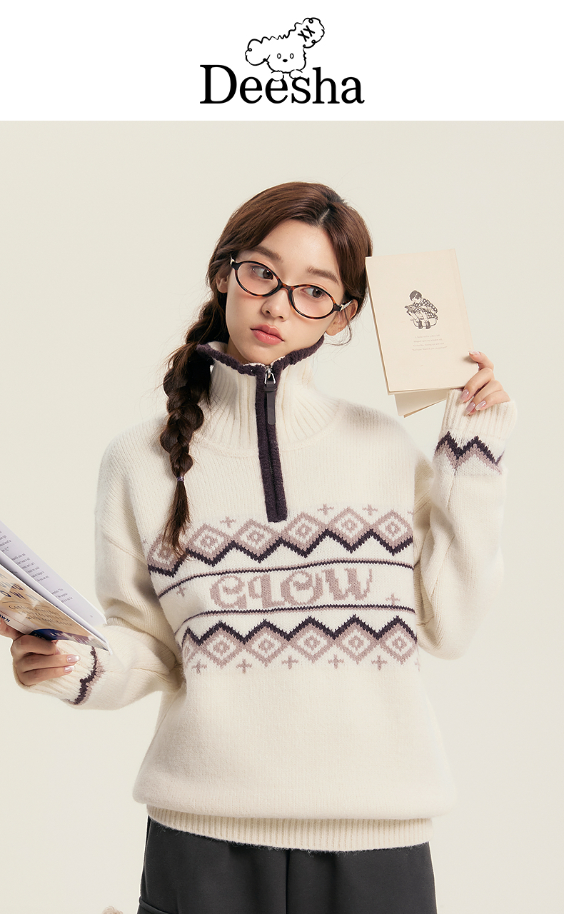 笛莎Deesha青少年女童毛衣2025冬季女童翻领字母提花毛衣