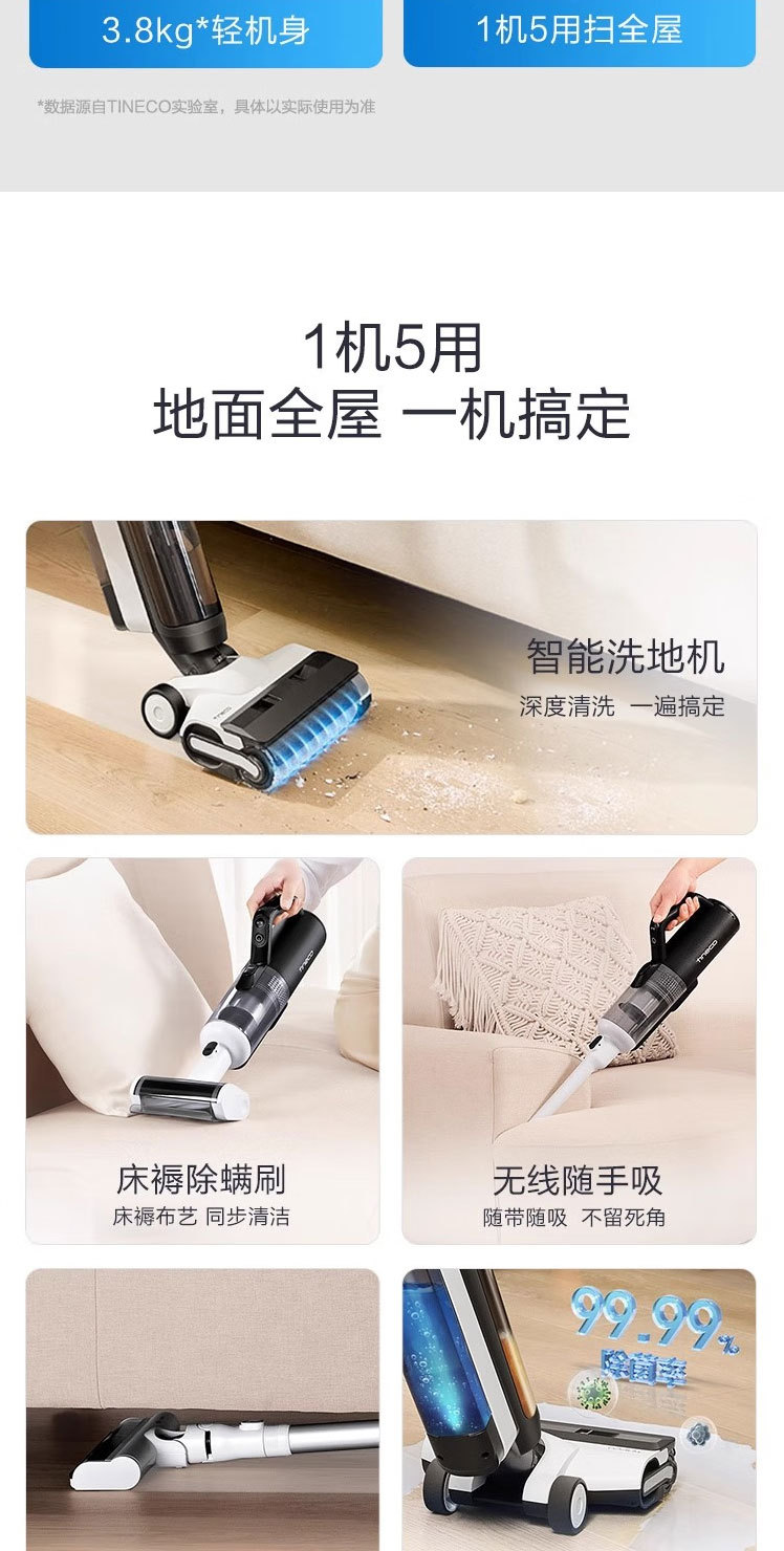 添可芙万2.0slim电解水增配 智能无线吸拖多功能家用擦地机1机5用