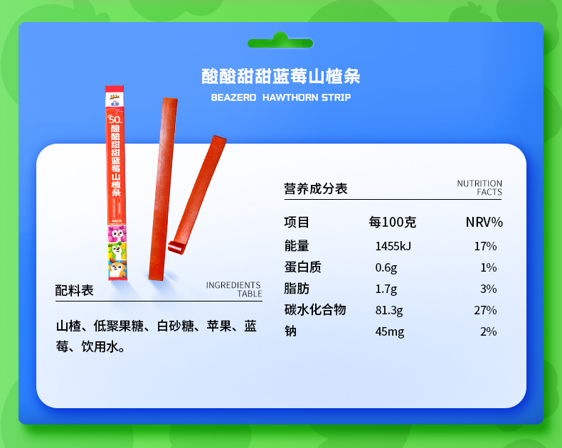 未零酸酸甜甜蓝莓山楂条33g 鹿战 队山楂健康零食水果条
