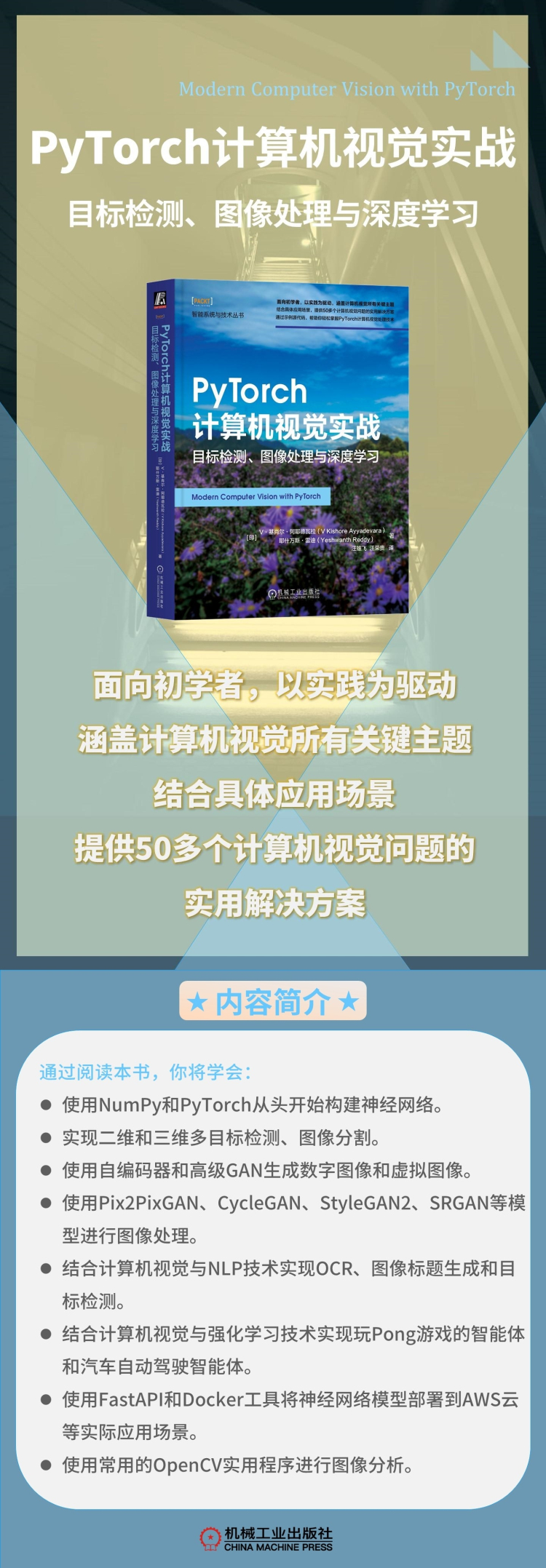 书名:PyTorch计算机视觉实战:目标检测、图像处理与深度学习