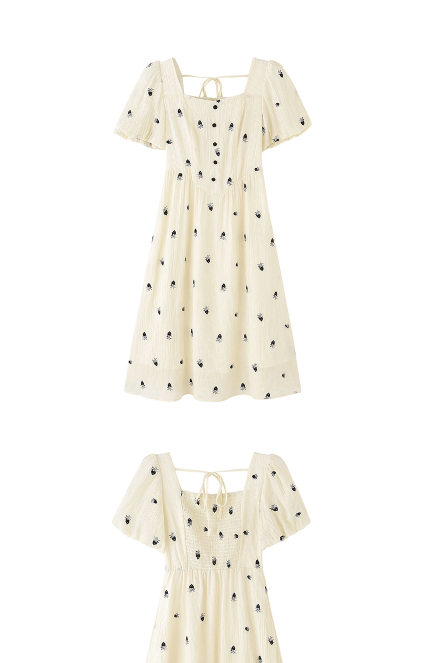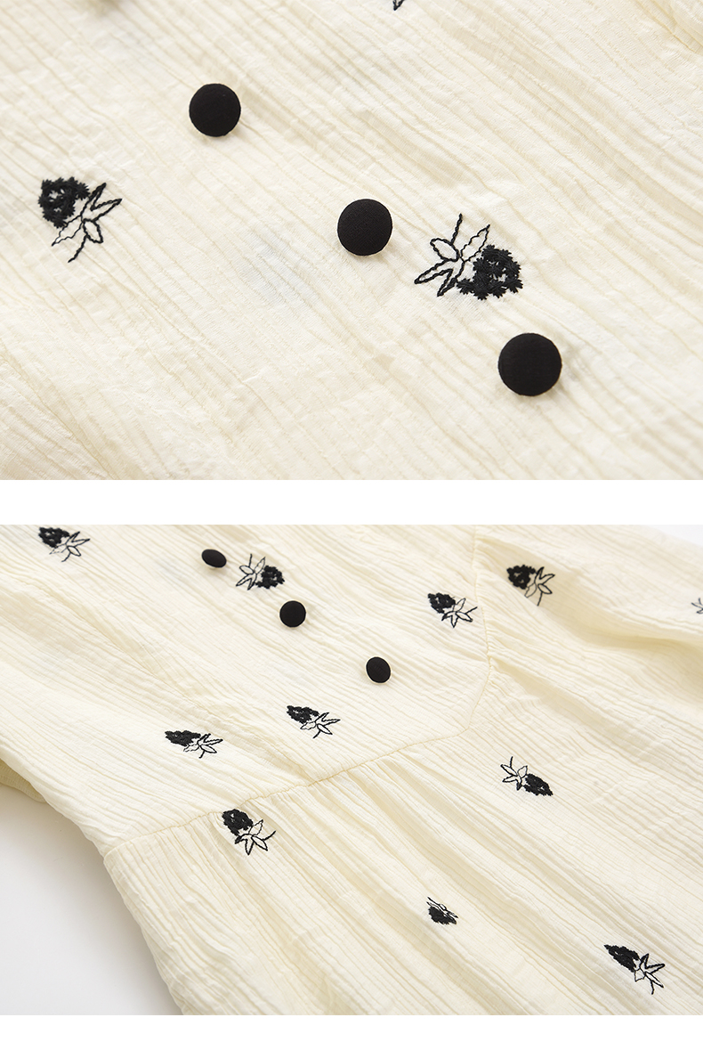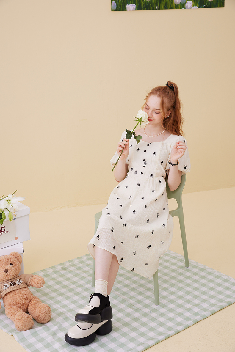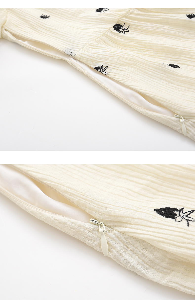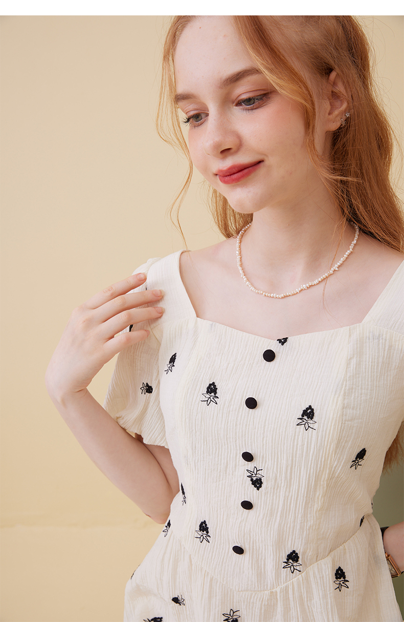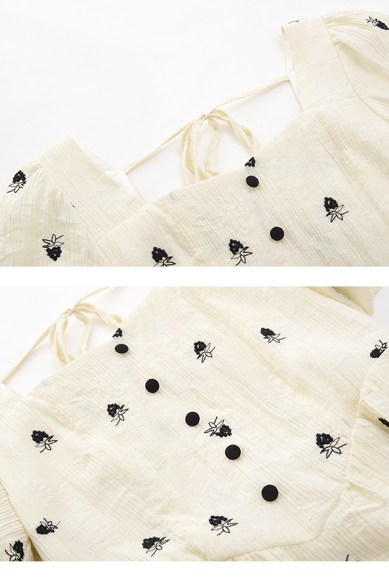 女装方领收腰绣花连衣裙-5896Q3222003