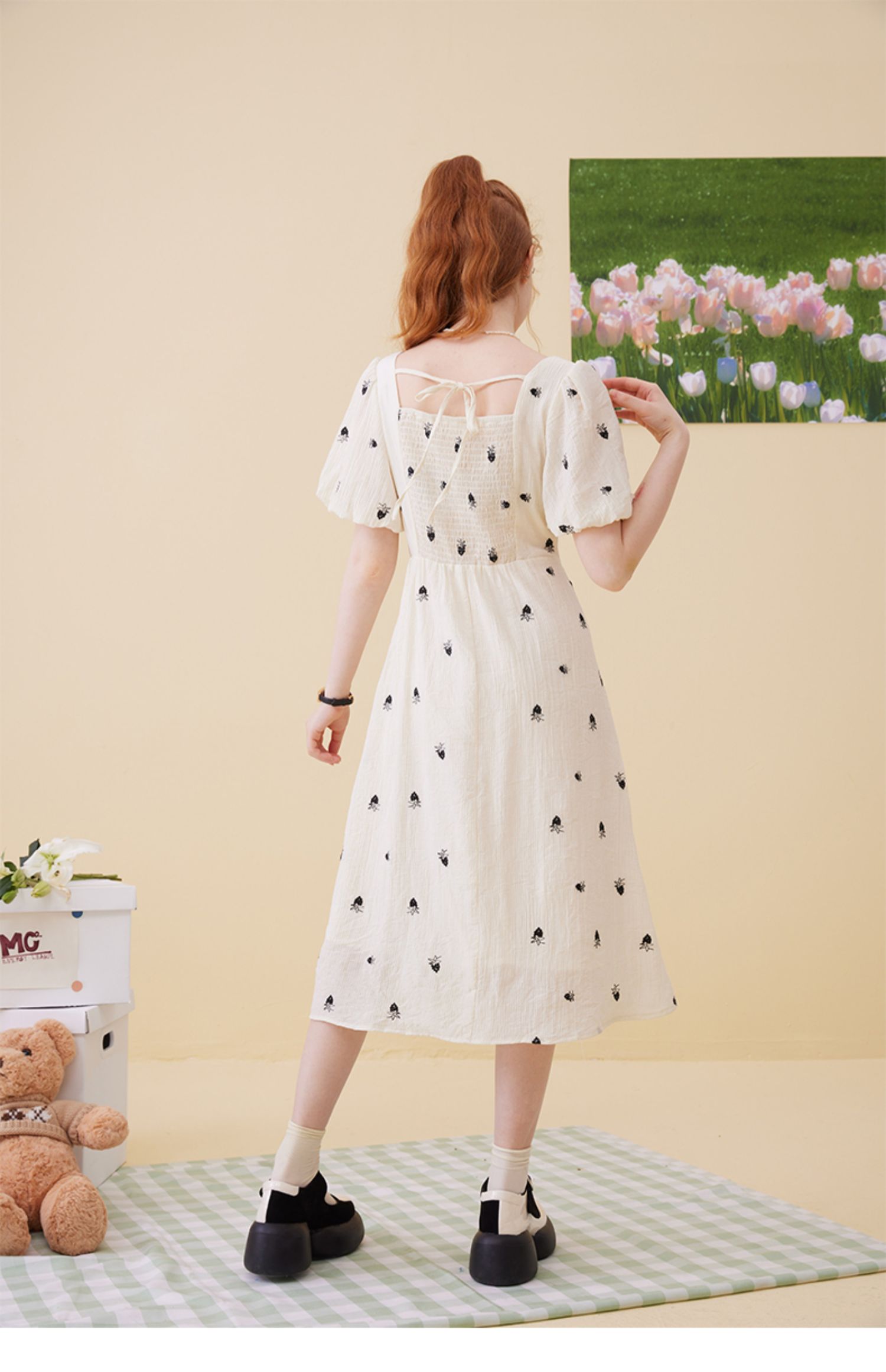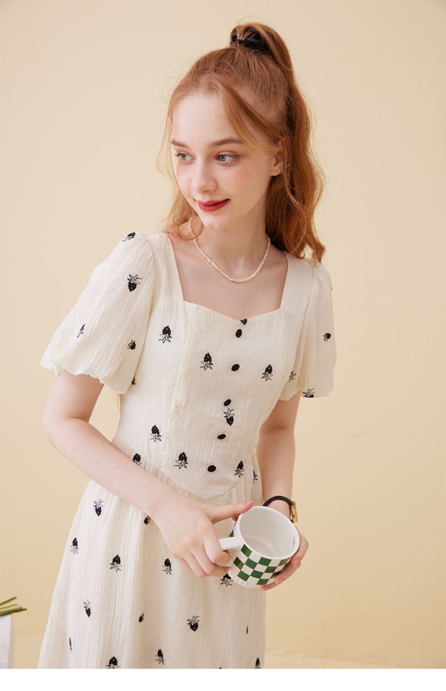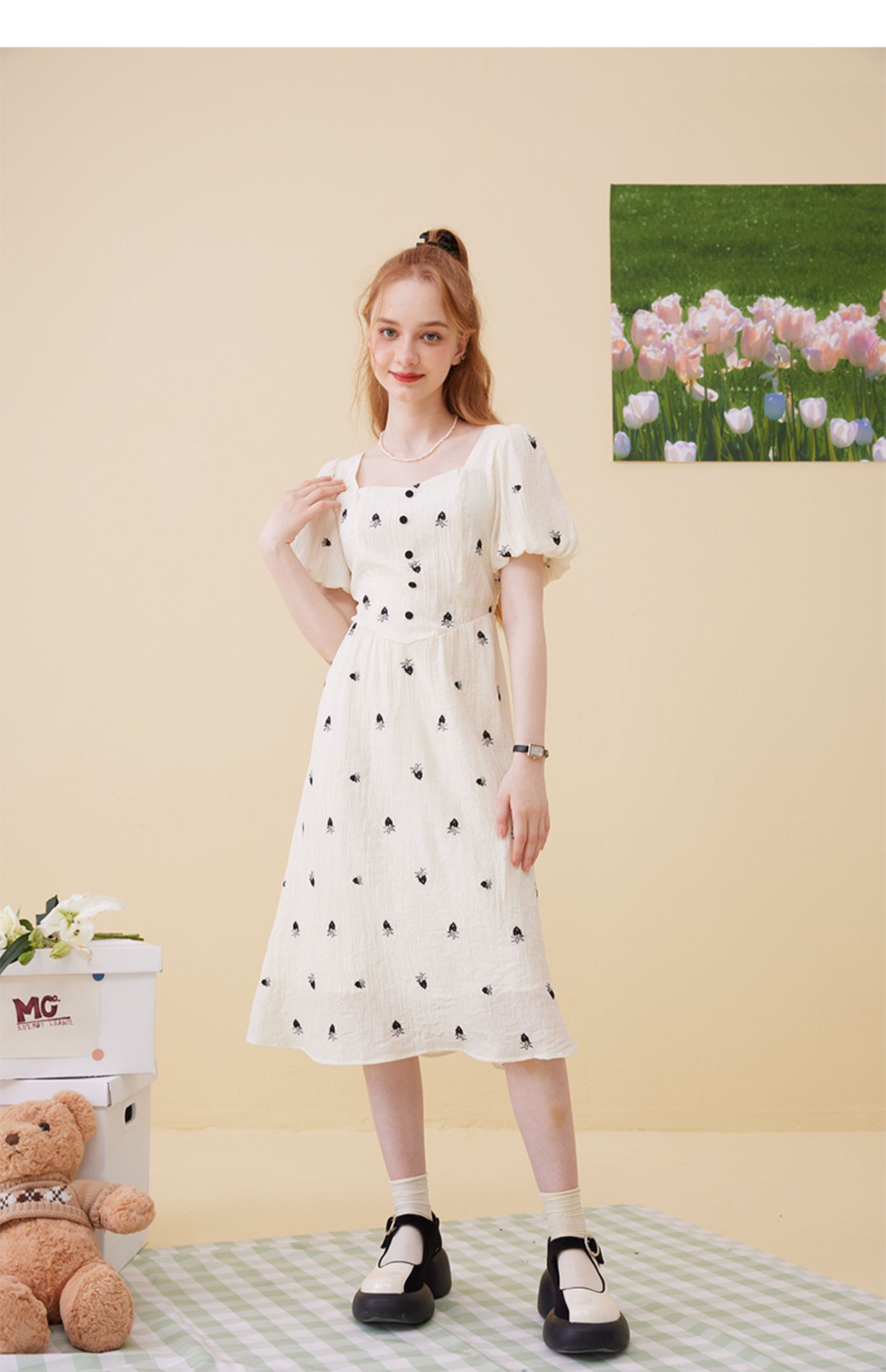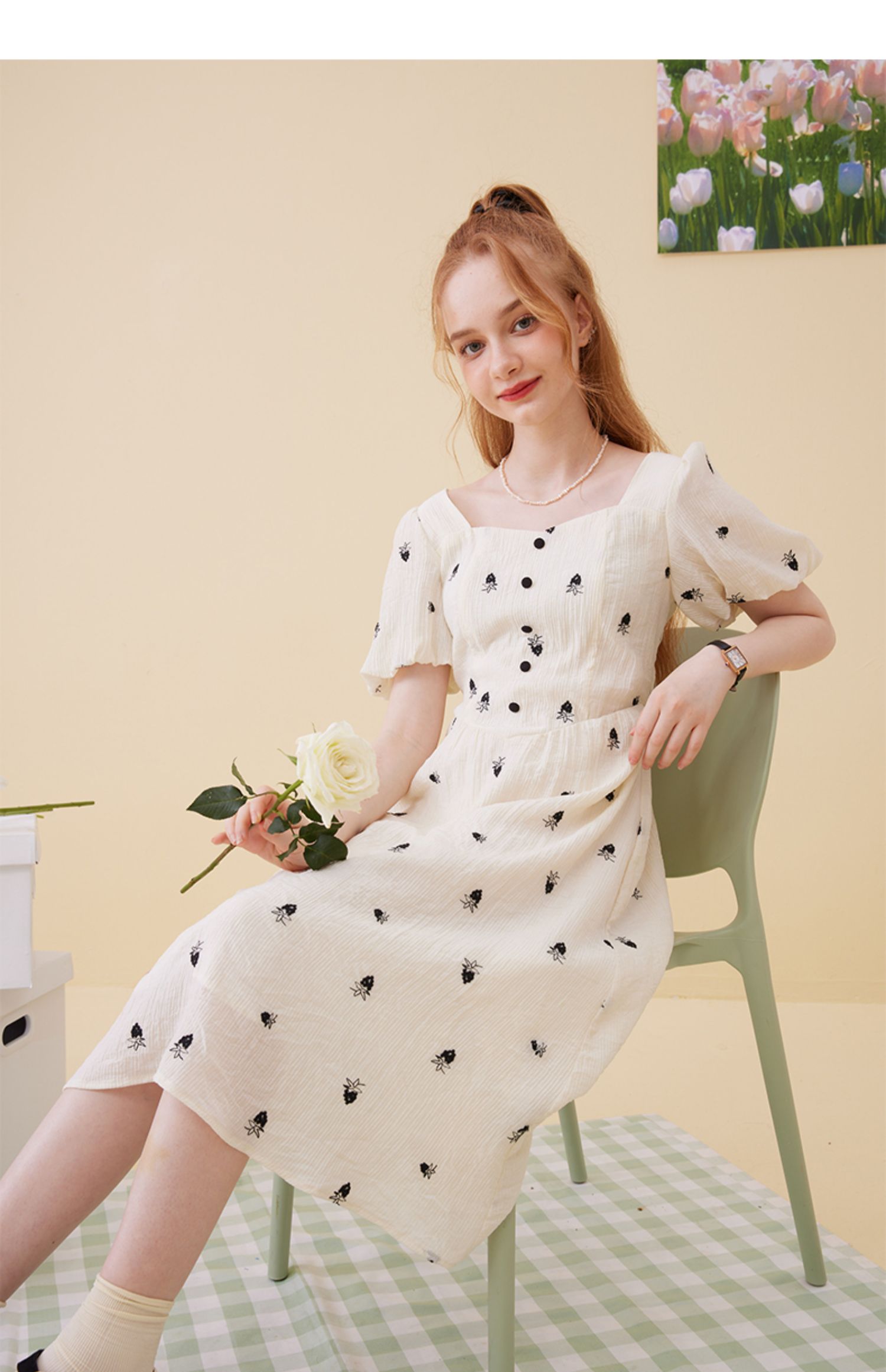 女装方领收腰绣花连衣裙-5896Q3222003