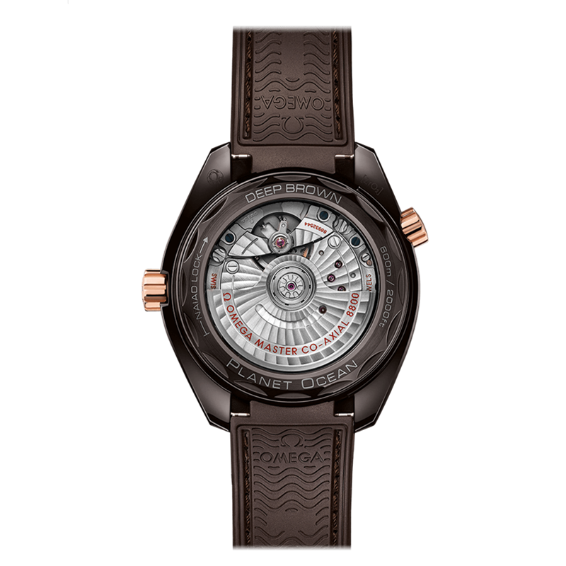 镜面材质 | 蓝宝石水晶玻璃 | 表盘 | 棕色陶瓷表壳 棕色陶瓷表圈上的潜水刻度由欧米茄Ceragold®技术制成。 表盘亦采用棕色陶瓷材质,数字和小时刻度以及指针由Sedna 18K金制成 3点钟位置则设有日历窗口。 透底,定向旋入式表背采用NAIAD锁扣技术,确保镌刻字样始终处于正确位置。 |