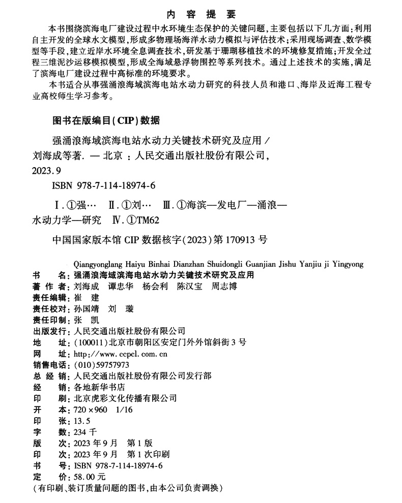 书名:强涌浪海域滨海电站水动力关键技术研究及应用