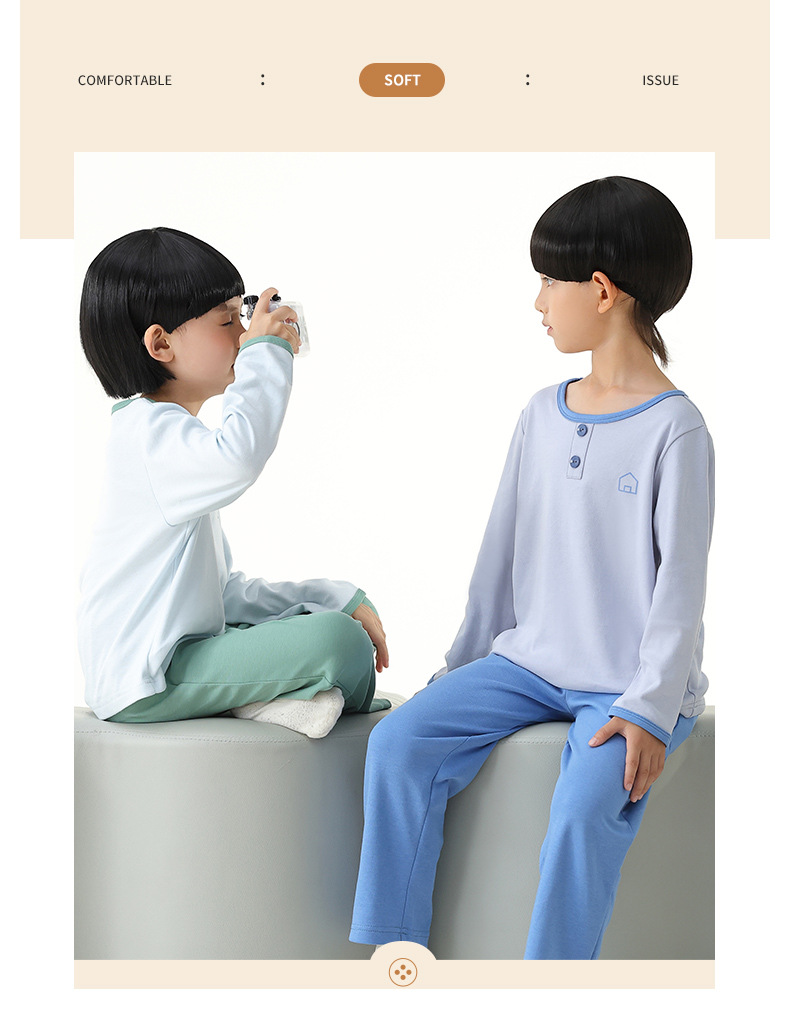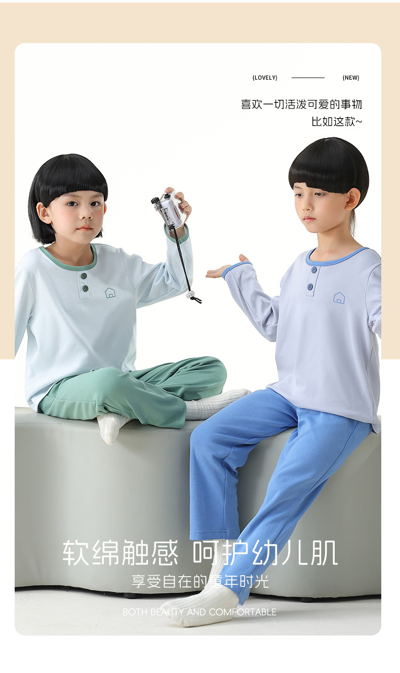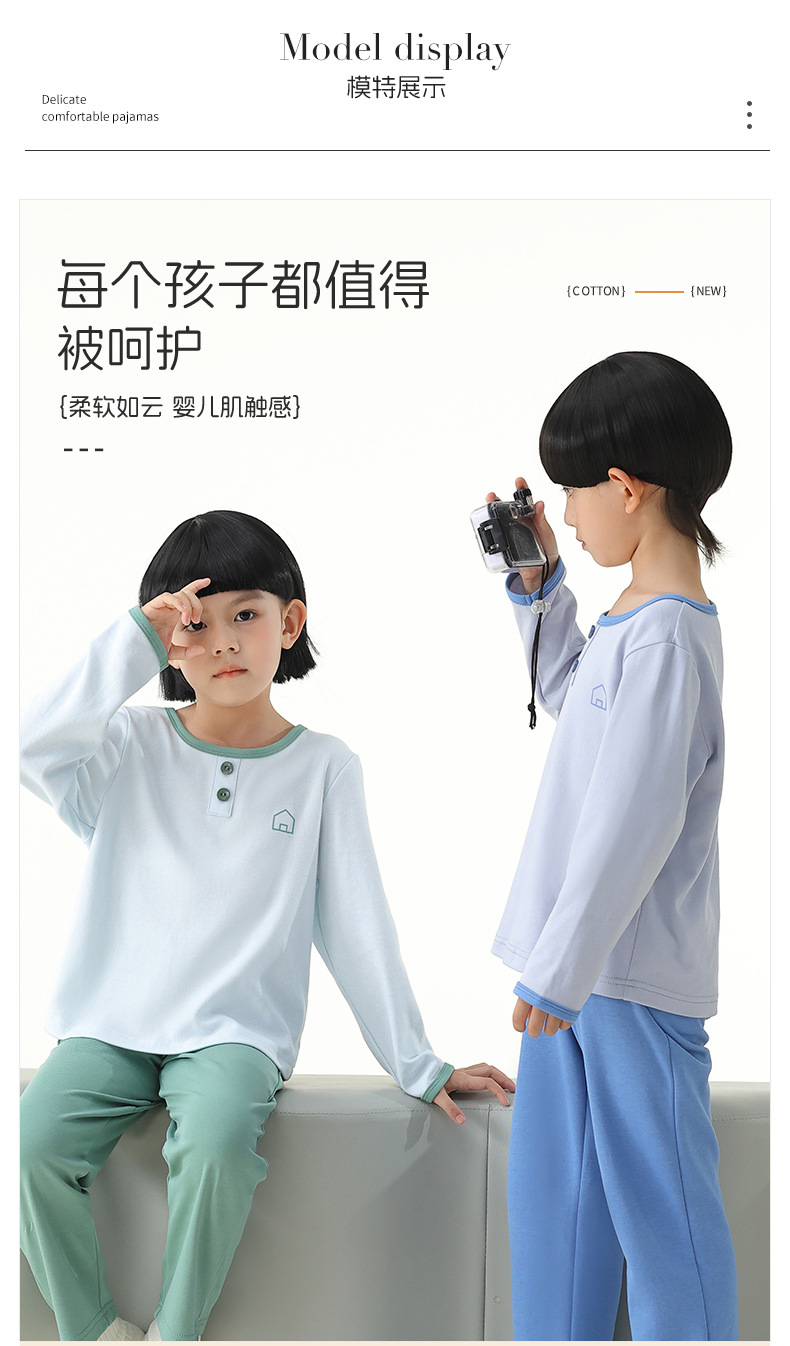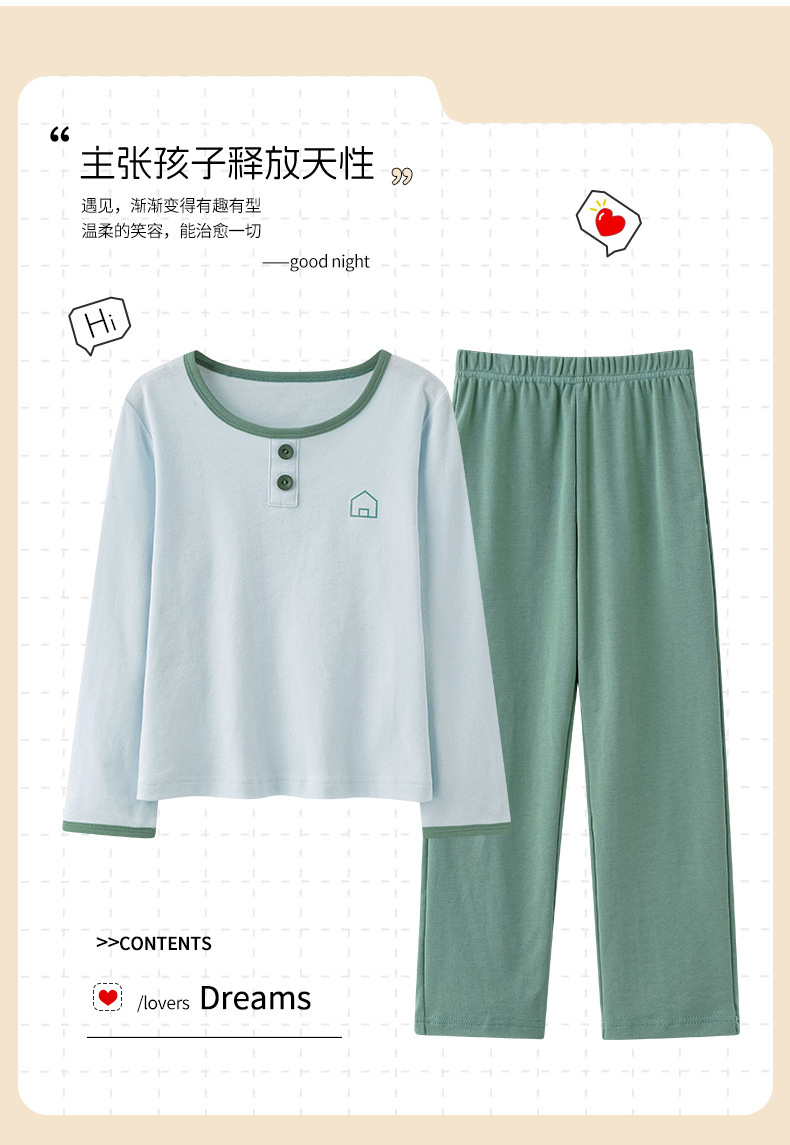 【专柜大牌品质】儿童春秋全棉睡衣 中大童翻领纯棉家居服套装