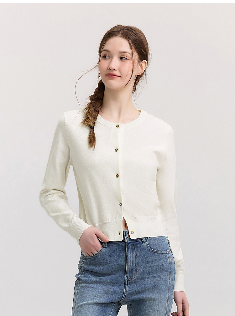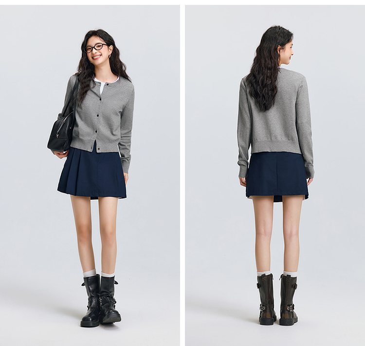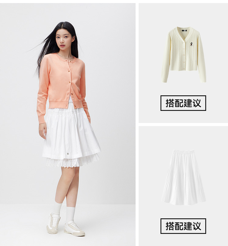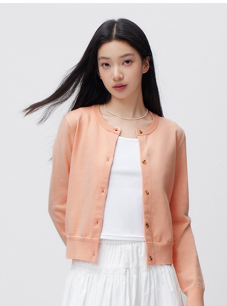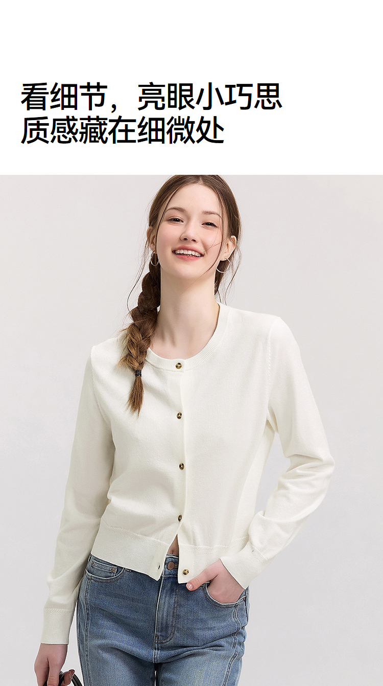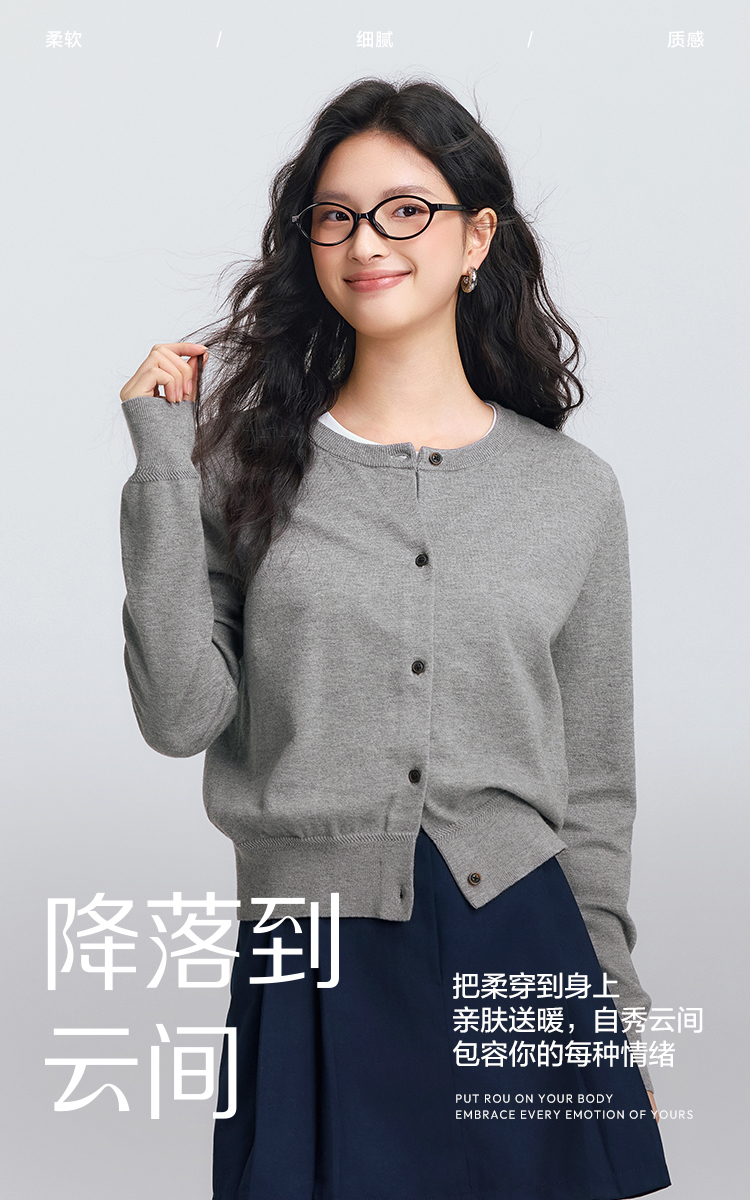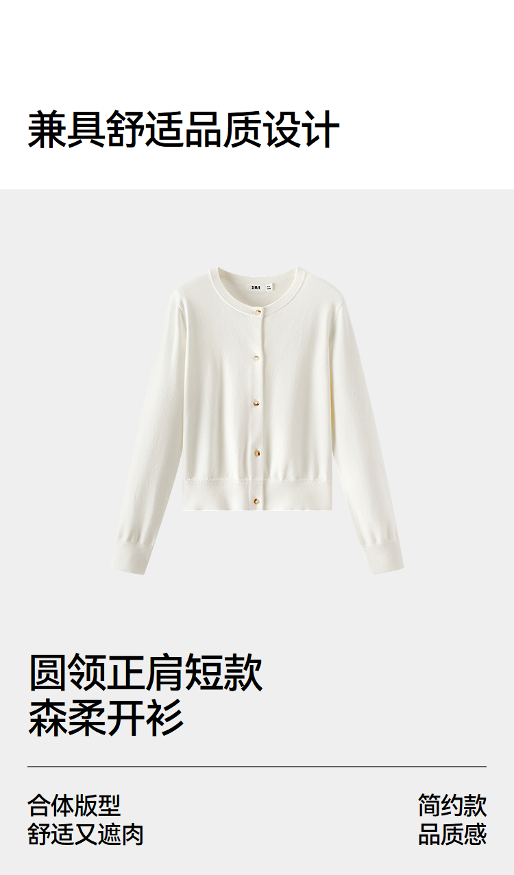 森柔|森马针织开衫女春季短款圆领正肩上衣气质温柔显瘦基础毛衫