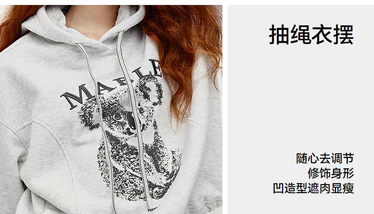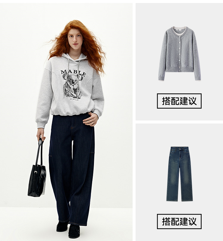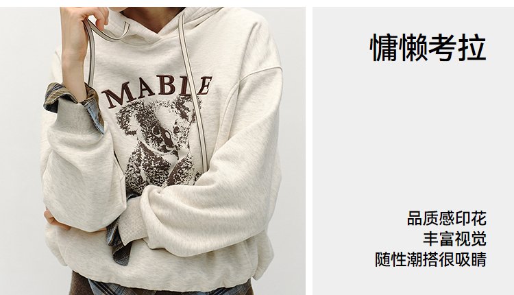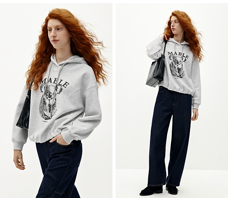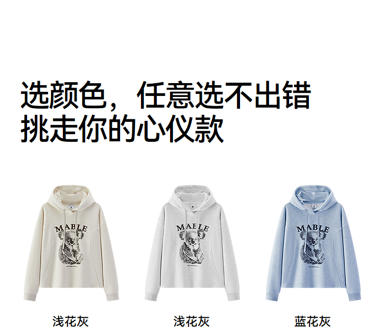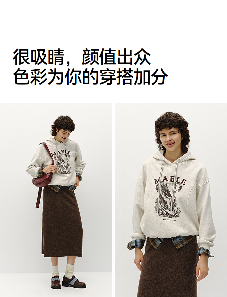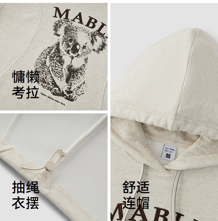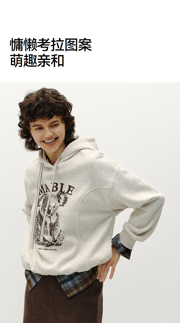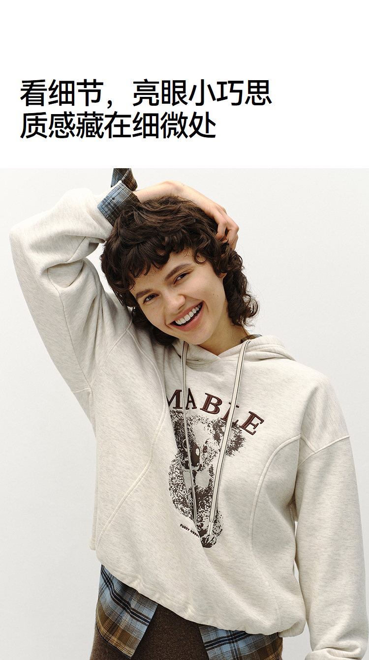 商场同款|森马卫衣女冬季加绒分割oversize连帽2025新款慵懒上衣