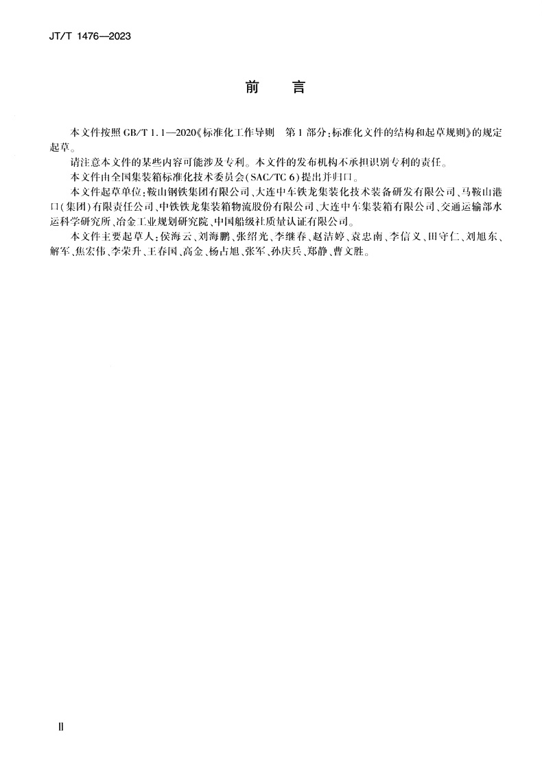 书名:台架式集装箱运输卷钢类货物技术规范(JT/T 1476—2023)