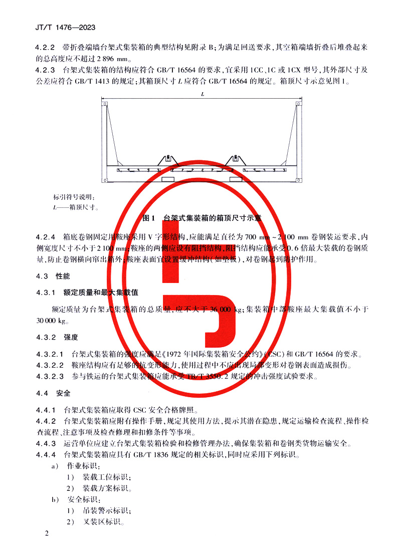 台架式集装箱运输卷钢类货物技术规范(JT/T 1476—2023)