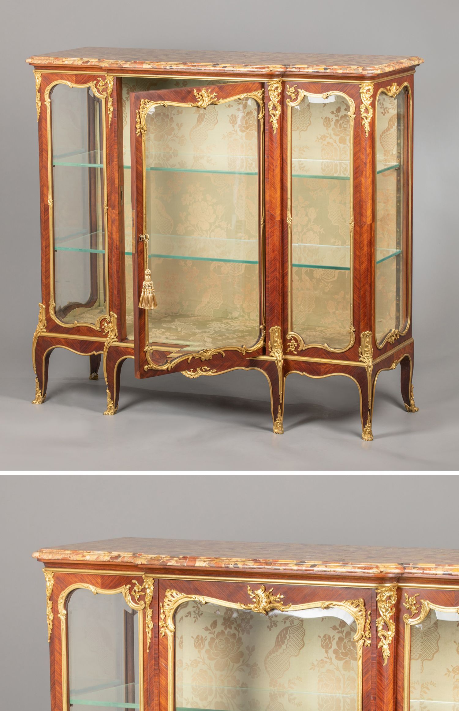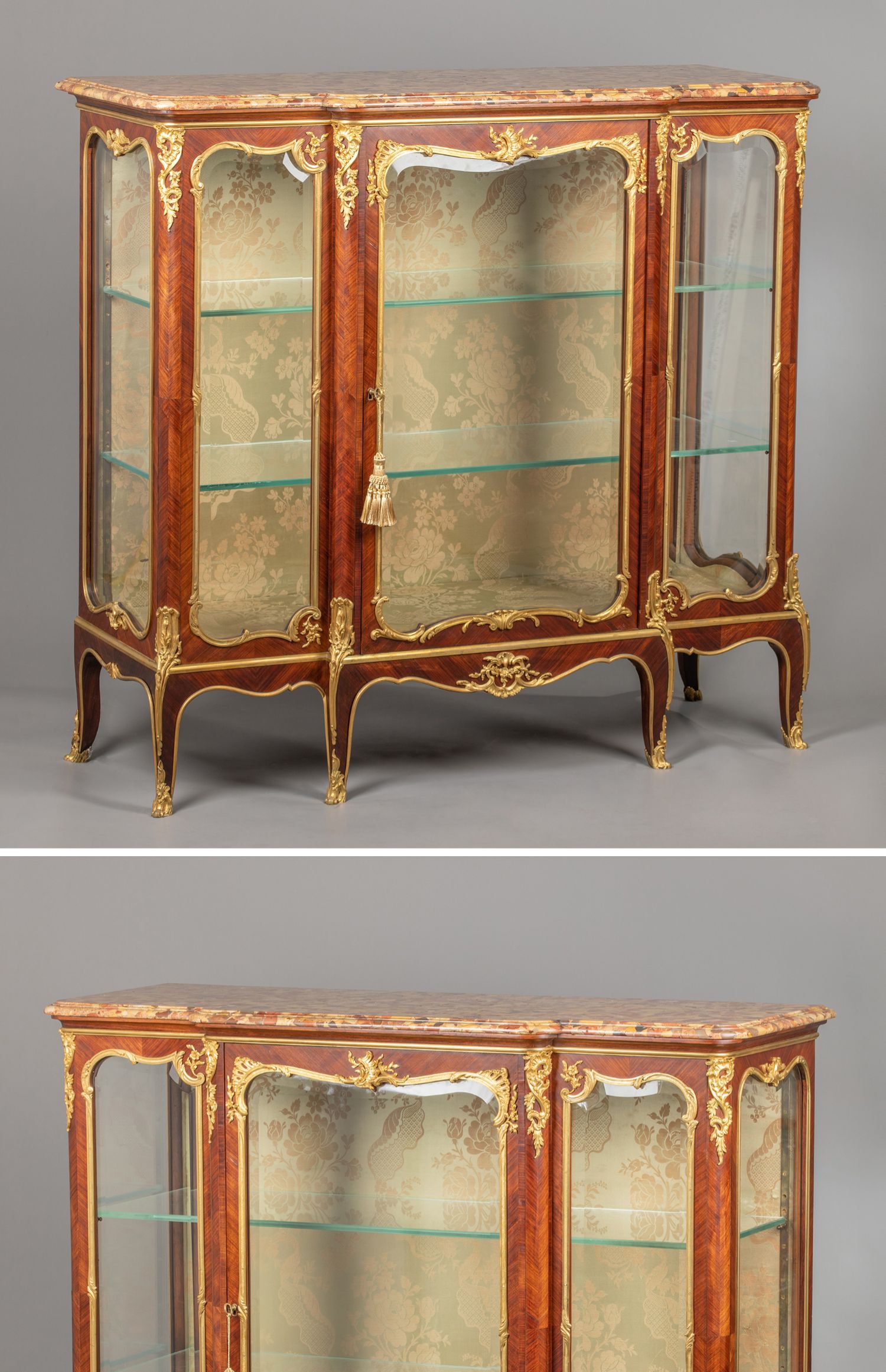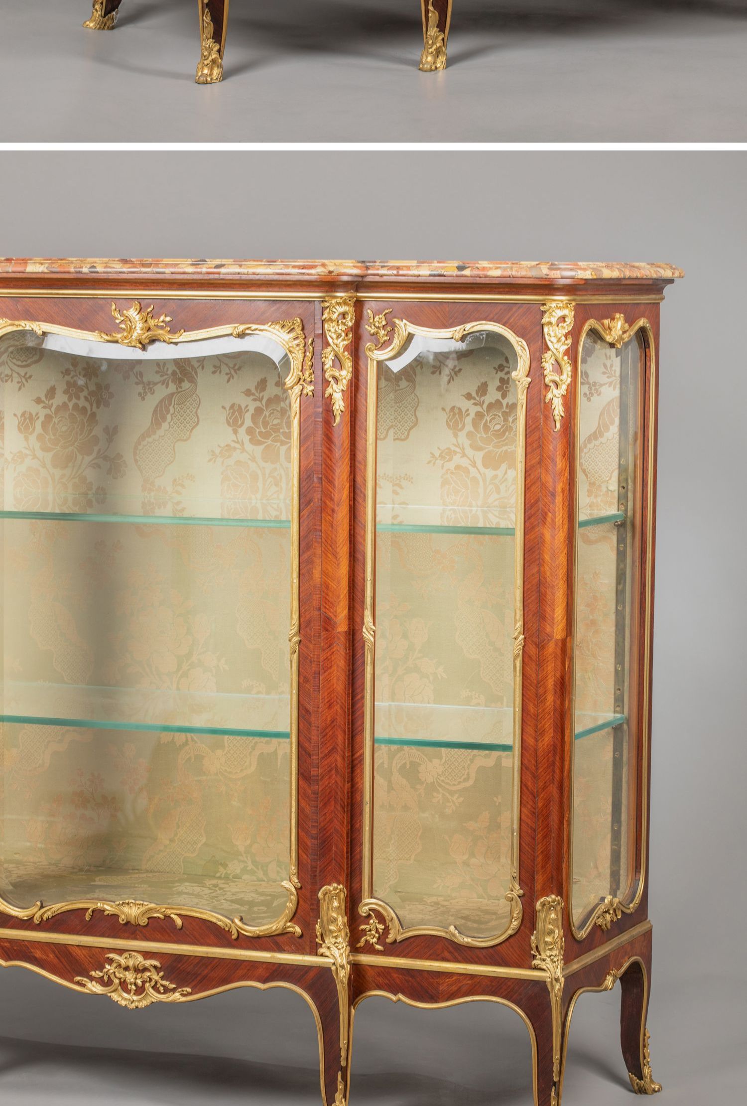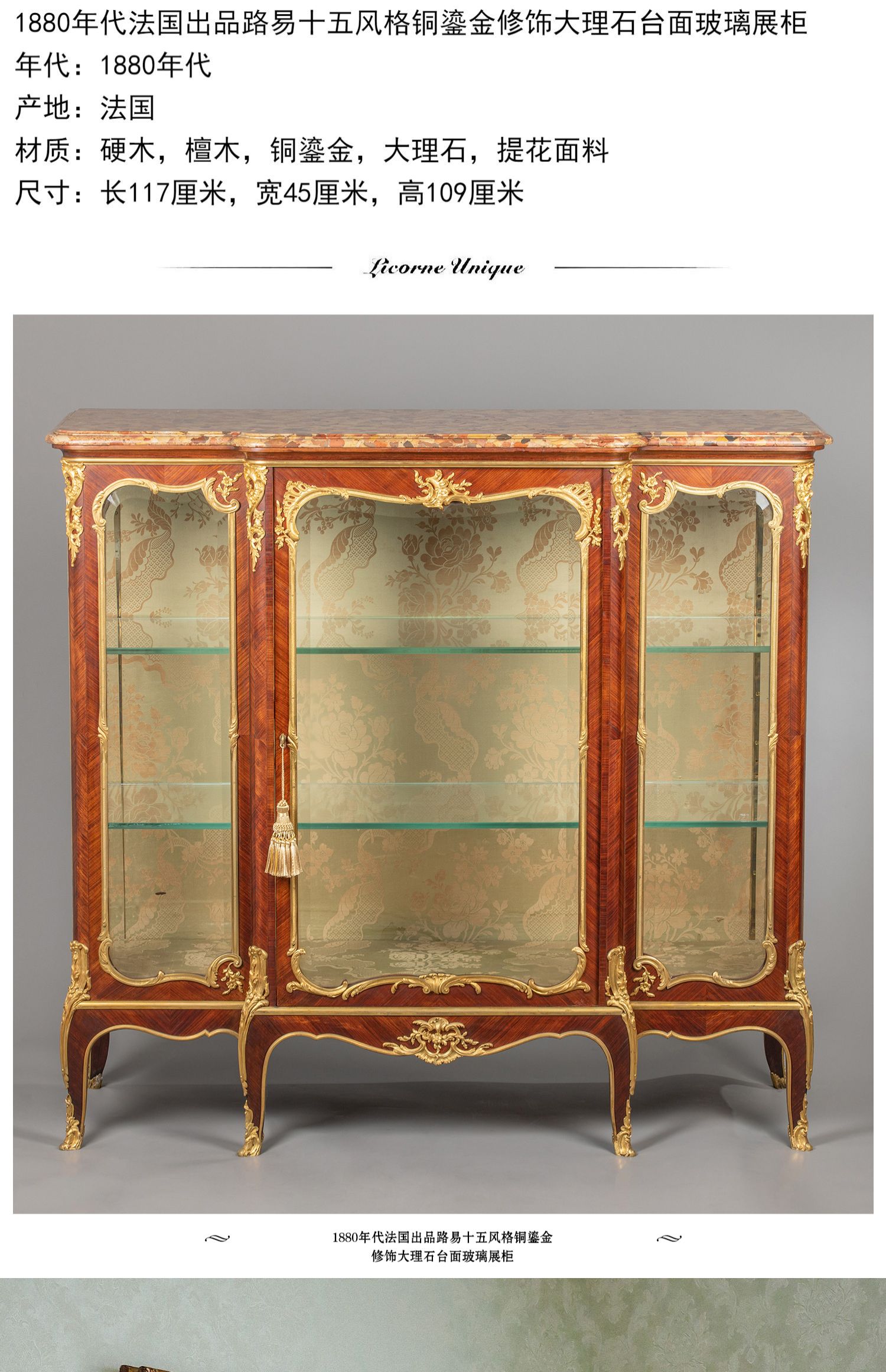 国内现货独角鹿西洋古董家具铜鎏金修饰大理石台面玻璃展柜展示柜