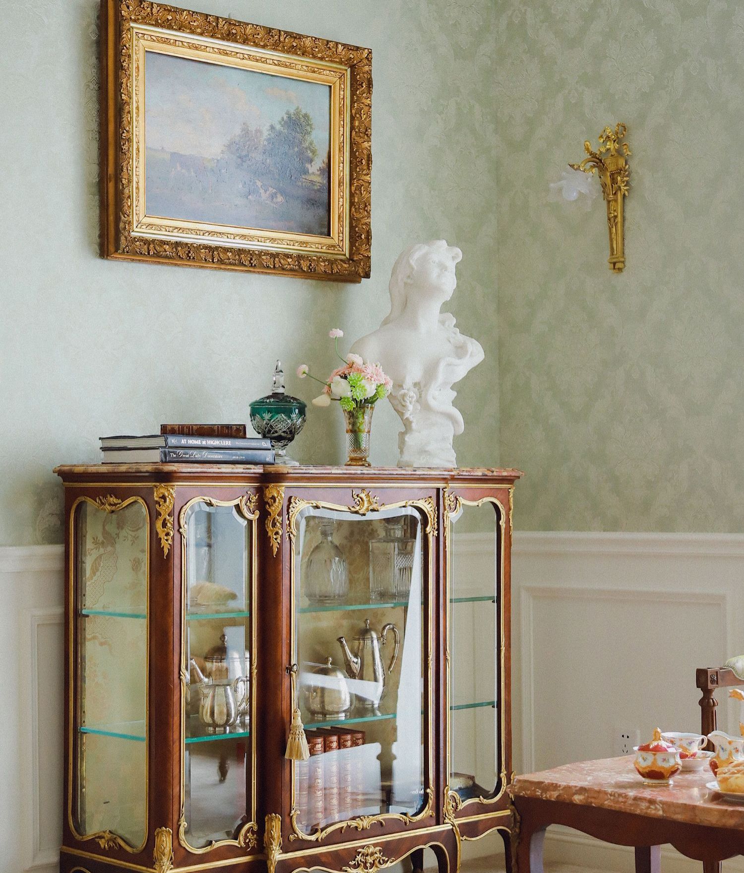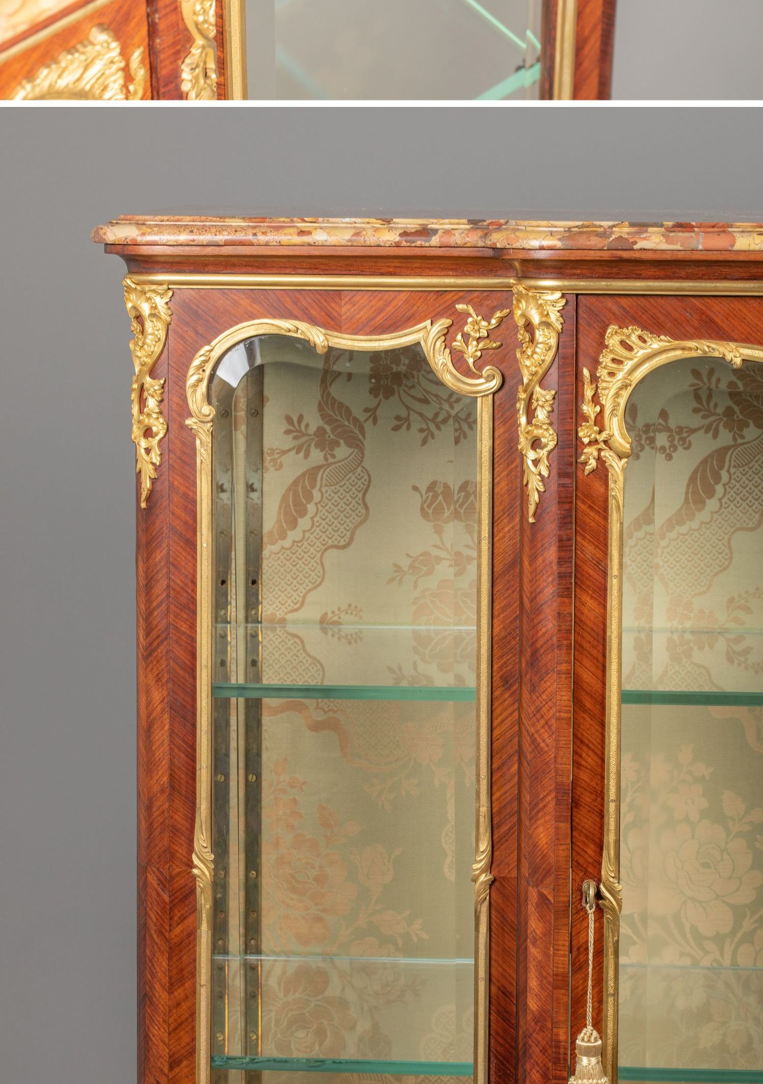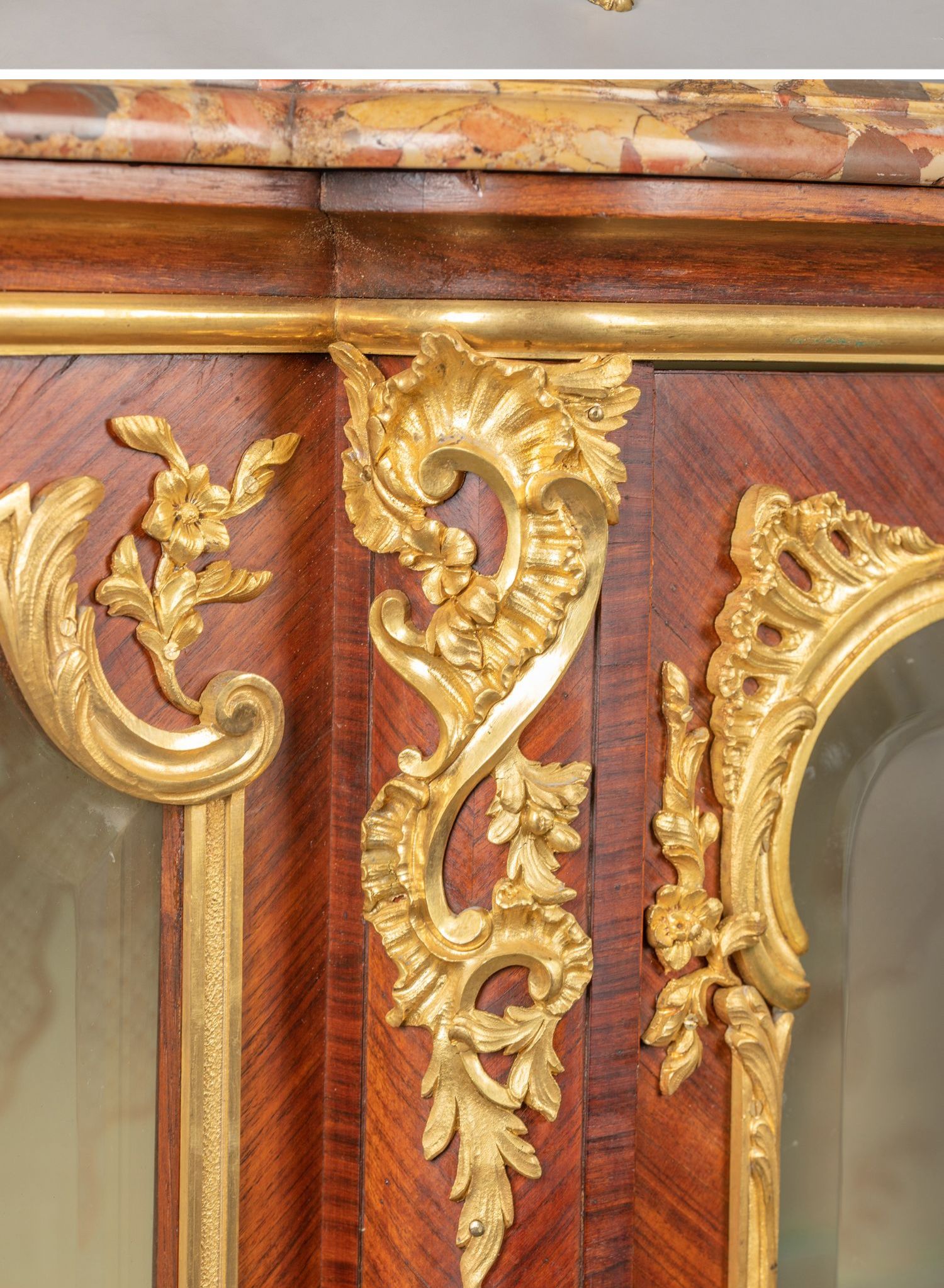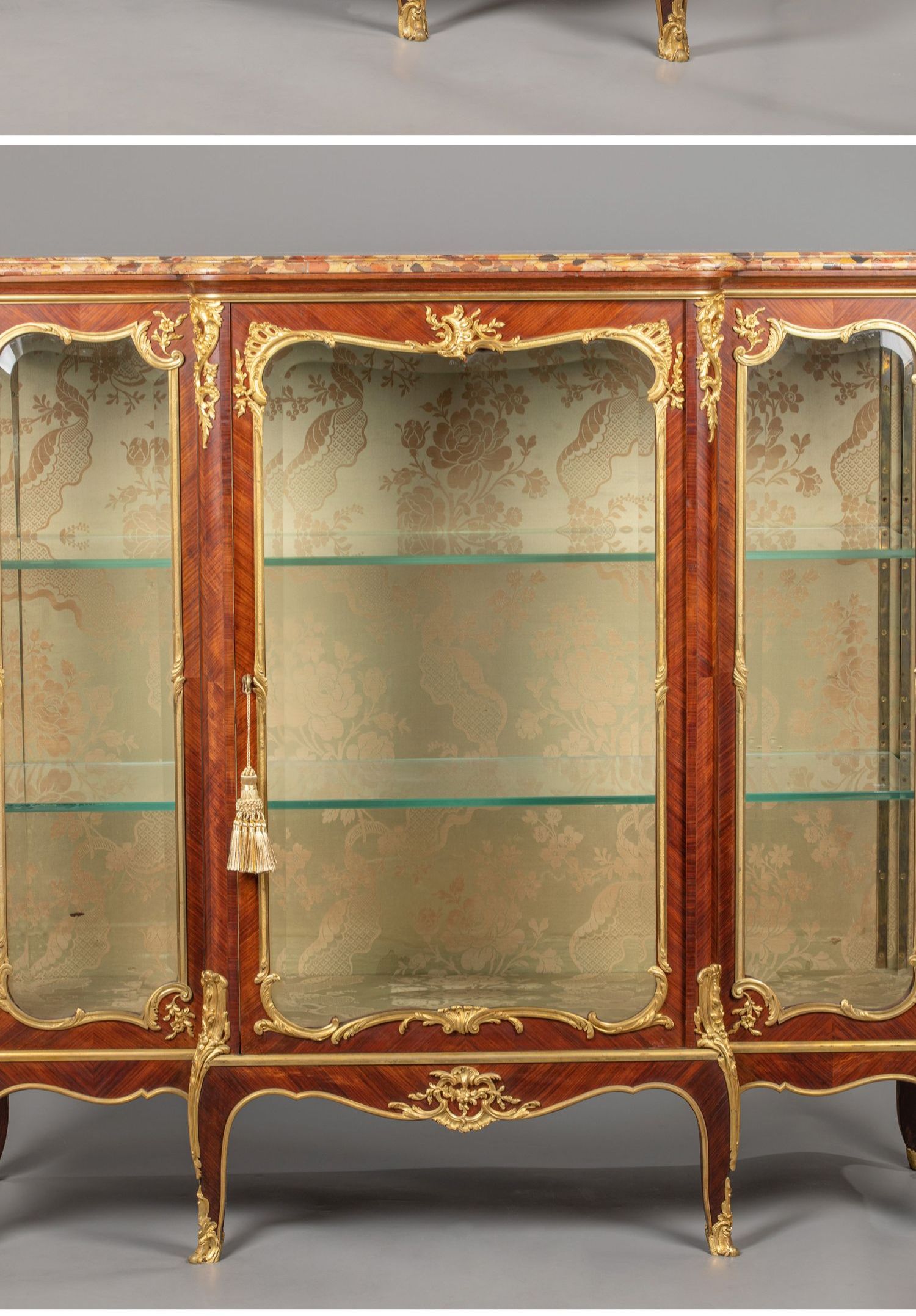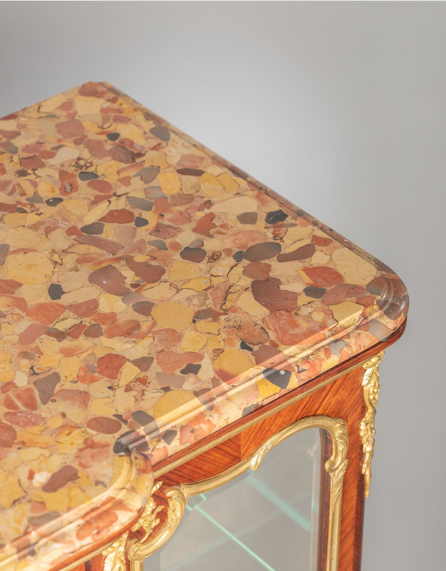 国内现货独角鹿西洋古董家具铜鎏金修饰大理石台面玻璃展柜展示柜