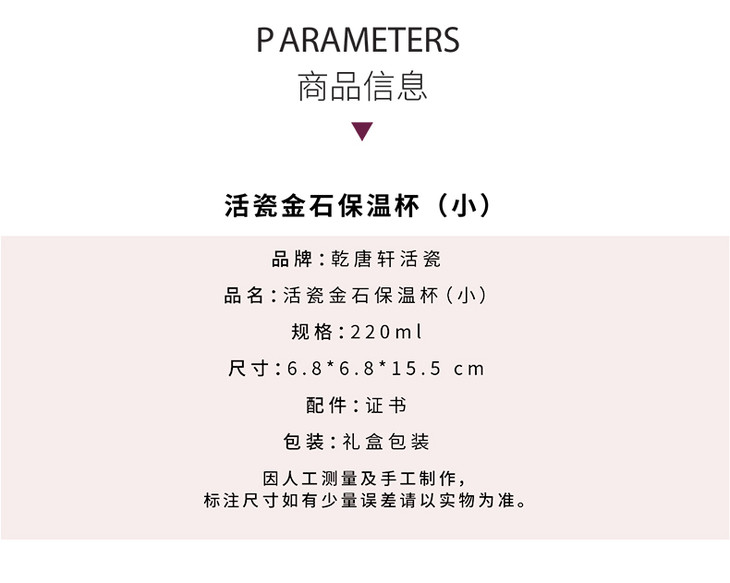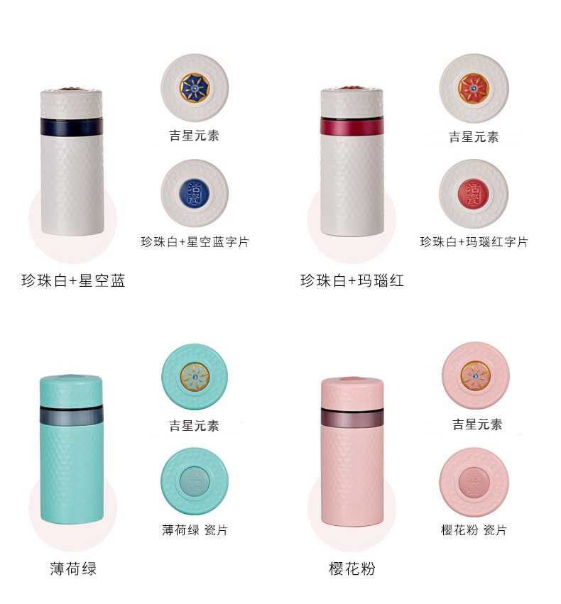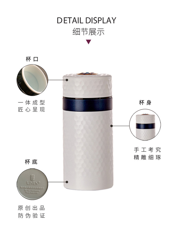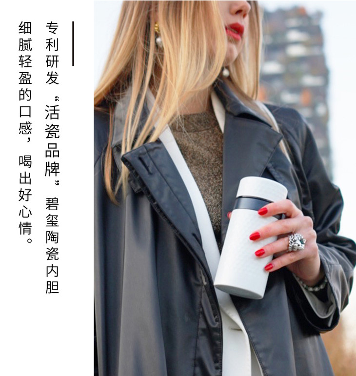 活瓷小金石保温杯 双层220ml 陶瓷内胆