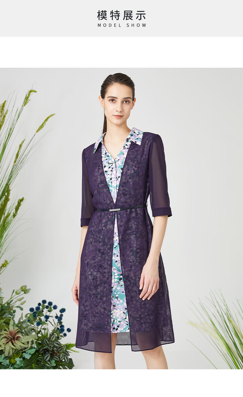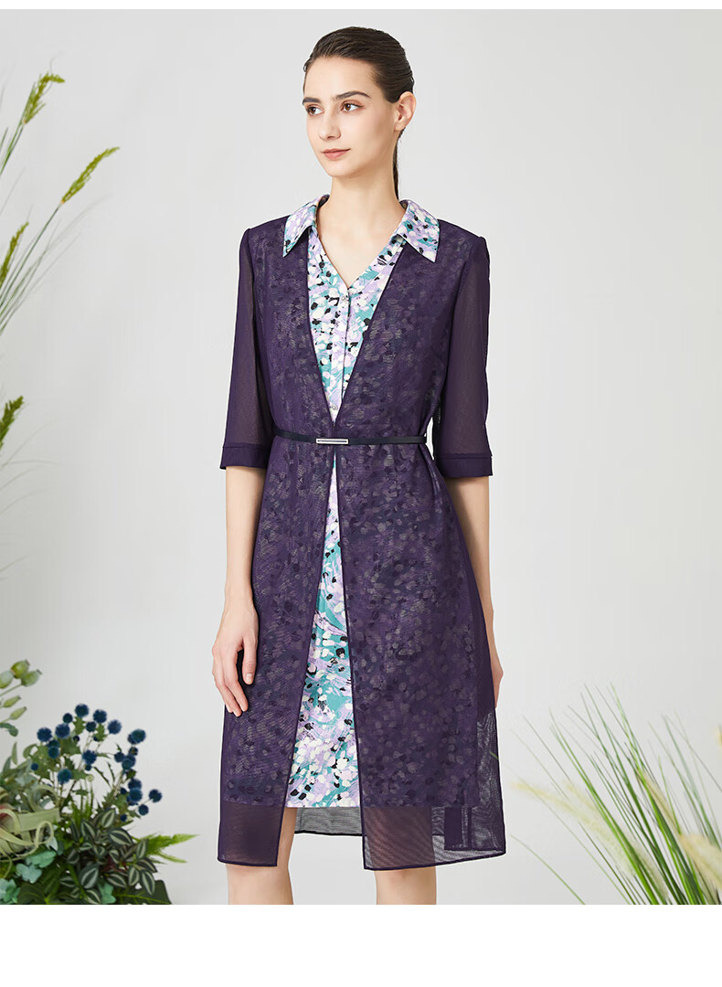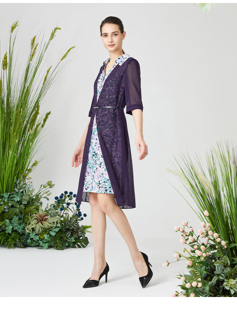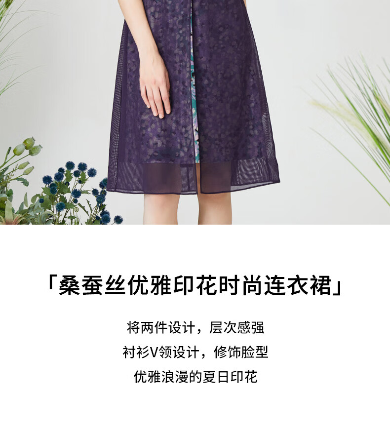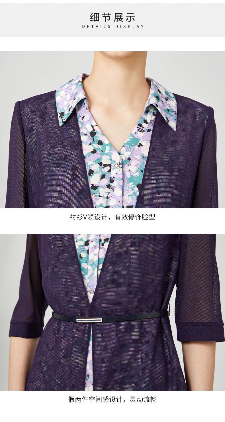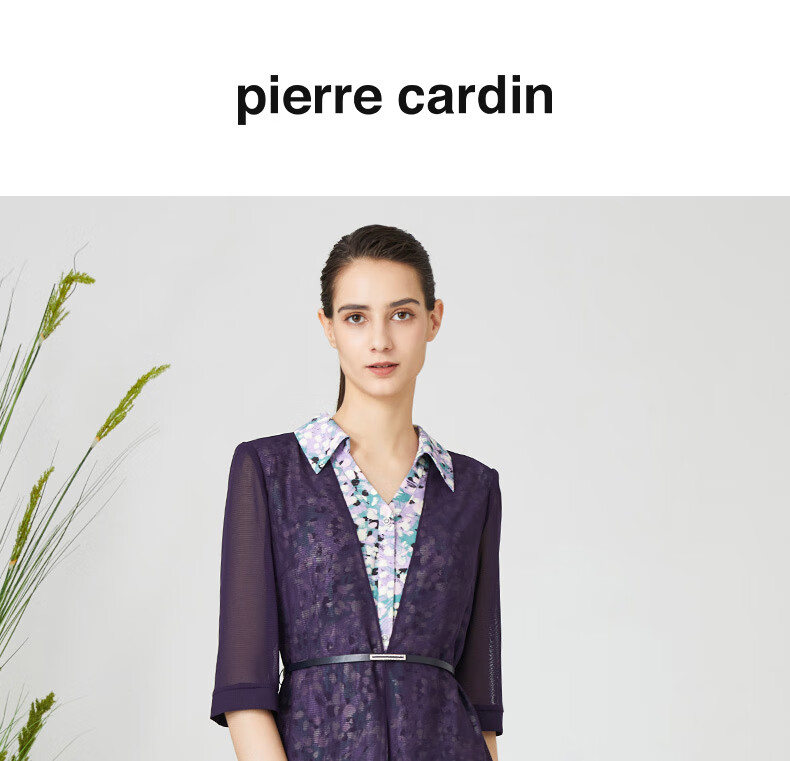 皮尔卡丹女装连衣裙衬衫V领短袖假两件通勤淑女裙子P3215D3075Z3