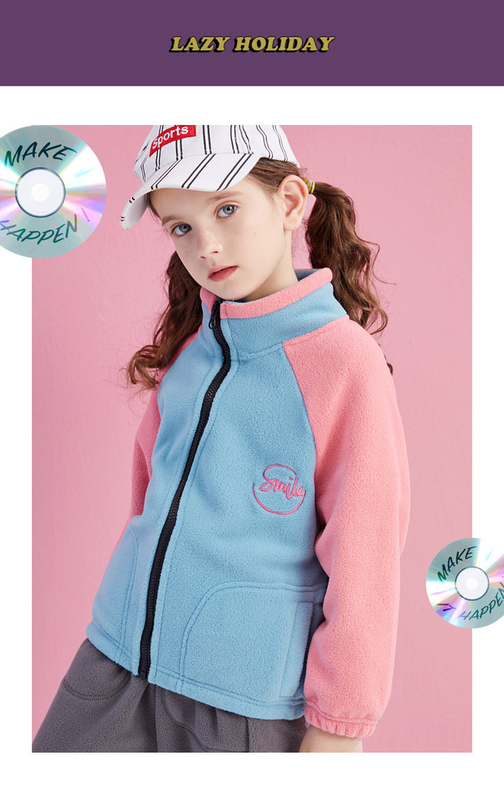 【反季清仓】龙之涵 亲子款插肩摇粒绒上衣 中大童时尚保暖外套 婴幼儿A类标准 抗静电