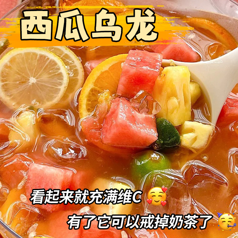 【买2送1❗️果香!茶香!真的绝了!西瓜乌龙茶】 甄选西瓜丁+乌龙茶+醇正乌龙+草莓丁+苹果丁+火龙果丁!粉嫩多汁轻盈纤维冷泡水果调味代用茶西瓜乌龙茶清火果茶